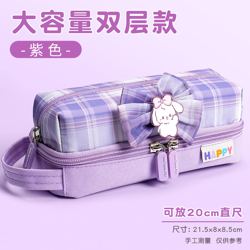 일본과 한국 스타일 JK 스타일 문구 가방 대용량 더블 레이어 옥스포드 천 연필 가방 소녀의 귀여운 지퍼 휴대용 연필 가방