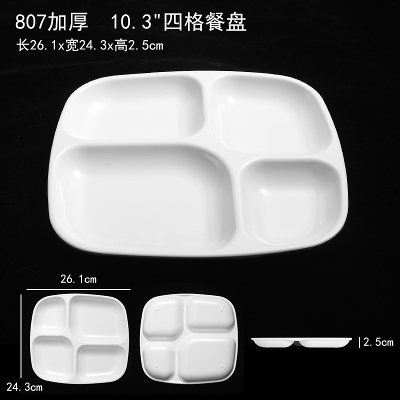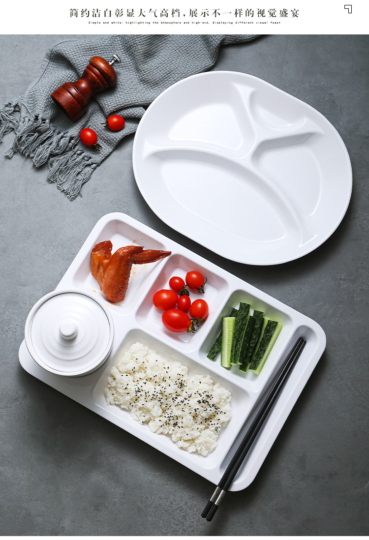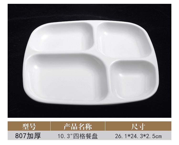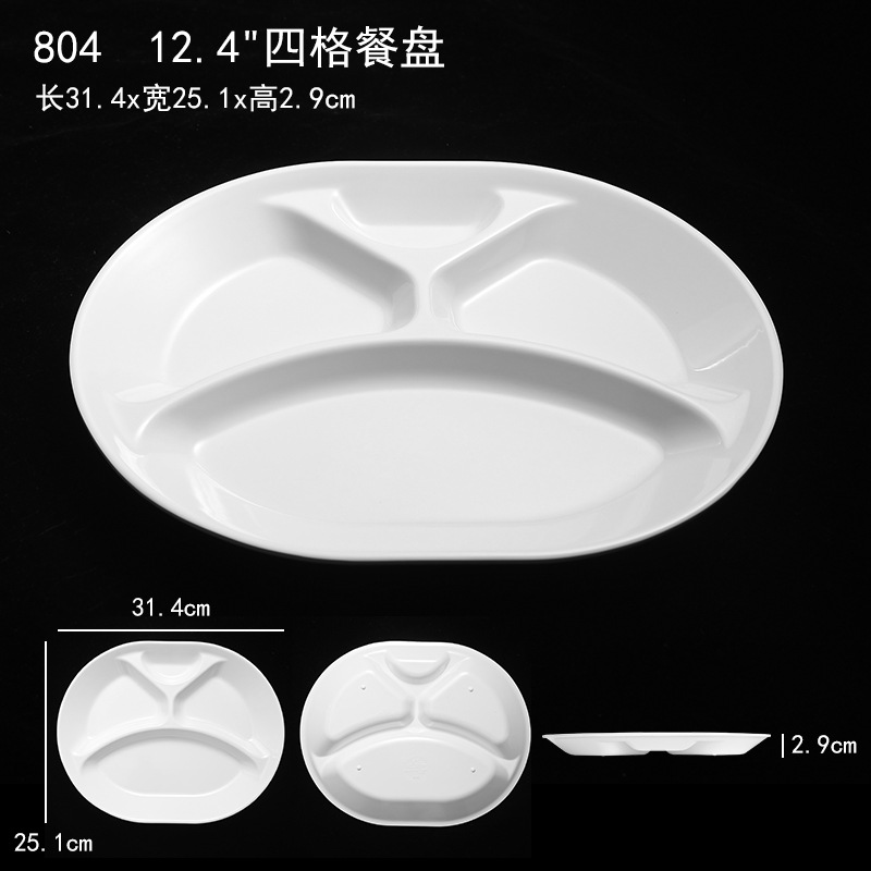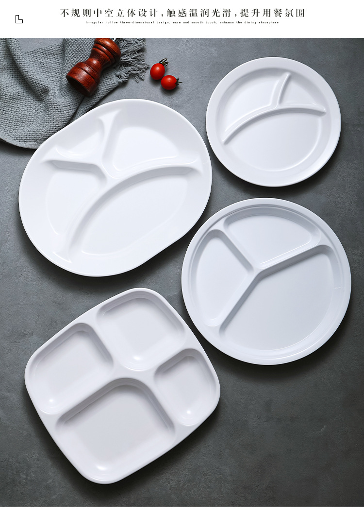 멜라민 4 칸 분할 접시 흰색 플라스틱 패스트 푸드 접시 도자기 학교 매점 식당 식기 도매스토어 가기