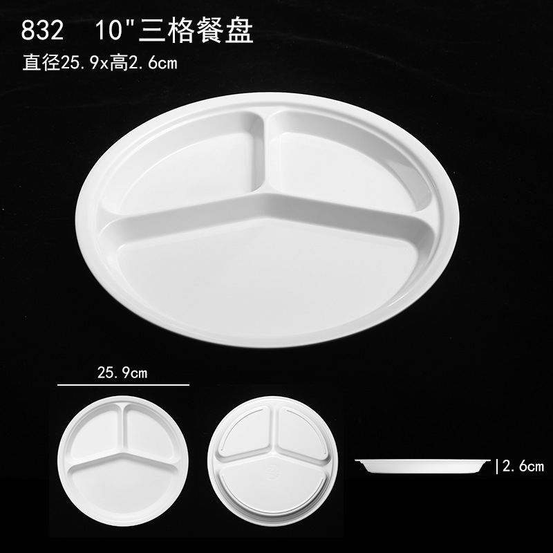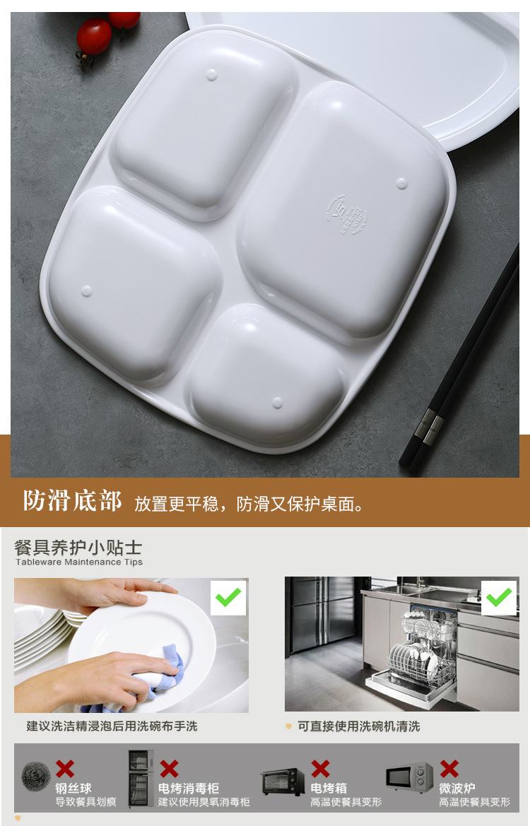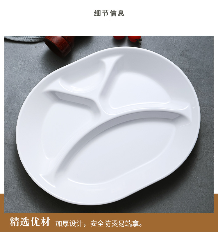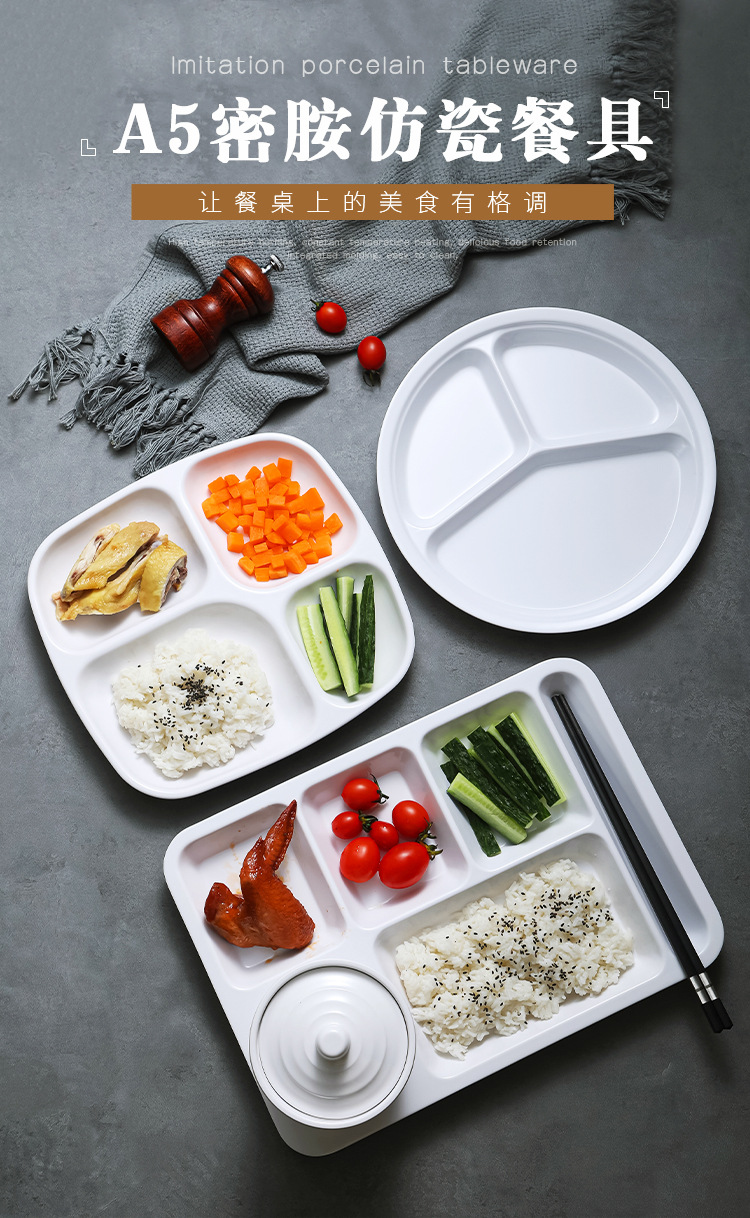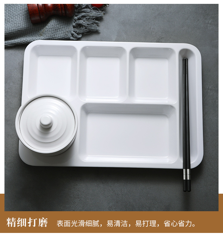 멜라민 4 칸 분할 접시 흰색 플라스틱 패스트 푸드 접시 도자기 학교 매점 식당 식기 도매스토어 가기