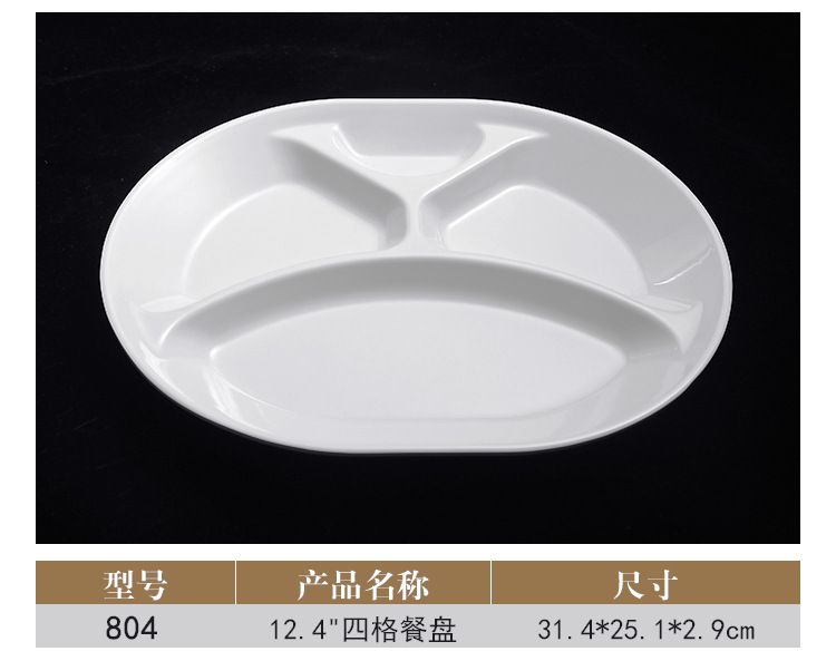 멜라민 4 칸 분할 접시 흰색 플라스틱 패스트 푸드 접시 도자기 학교 매점 식당 식기 도매