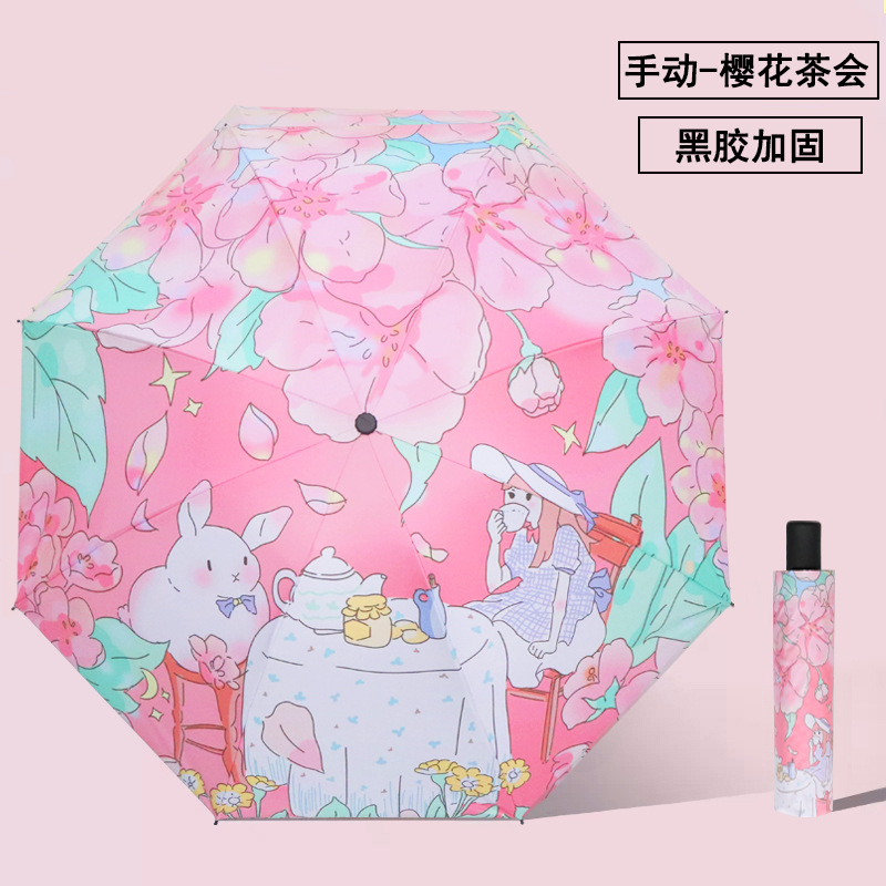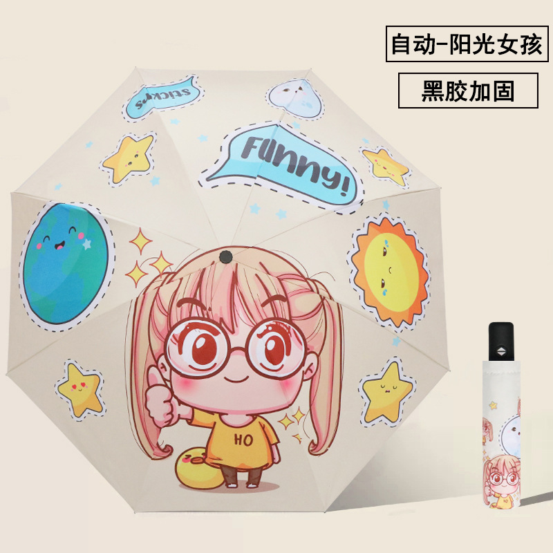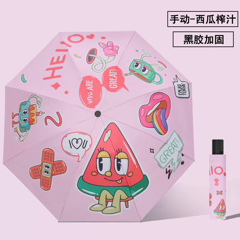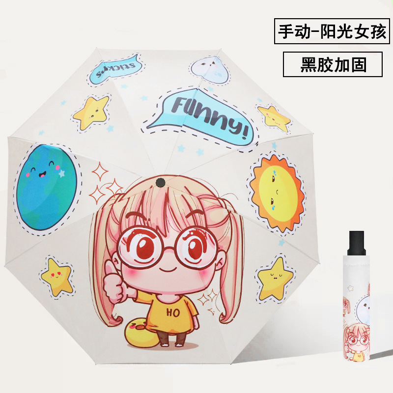 우산 자외선 방지 태양 우산 차양 우산 접는 우산 작은 신선한 검은 접착제 디지털 광고 로고 햇빛과 비오는 이중 사용