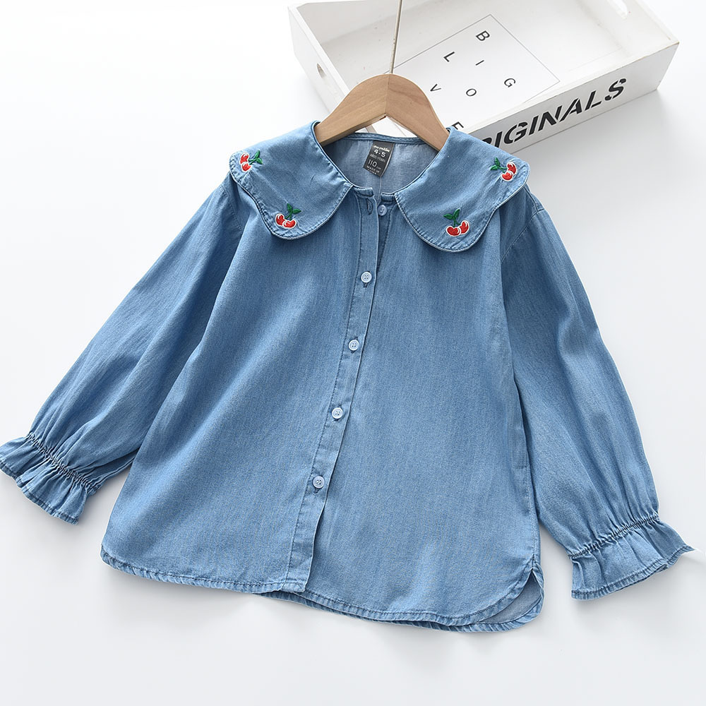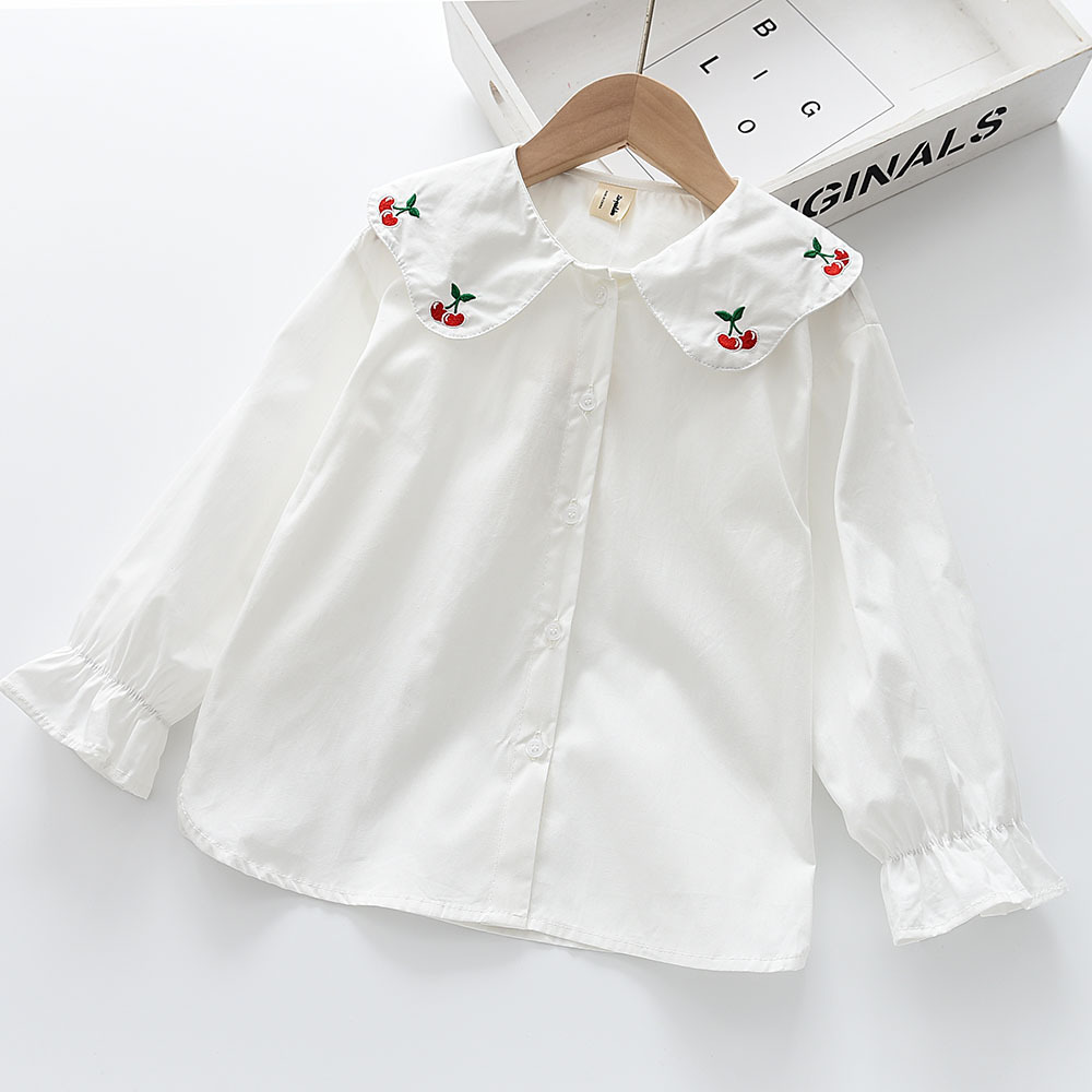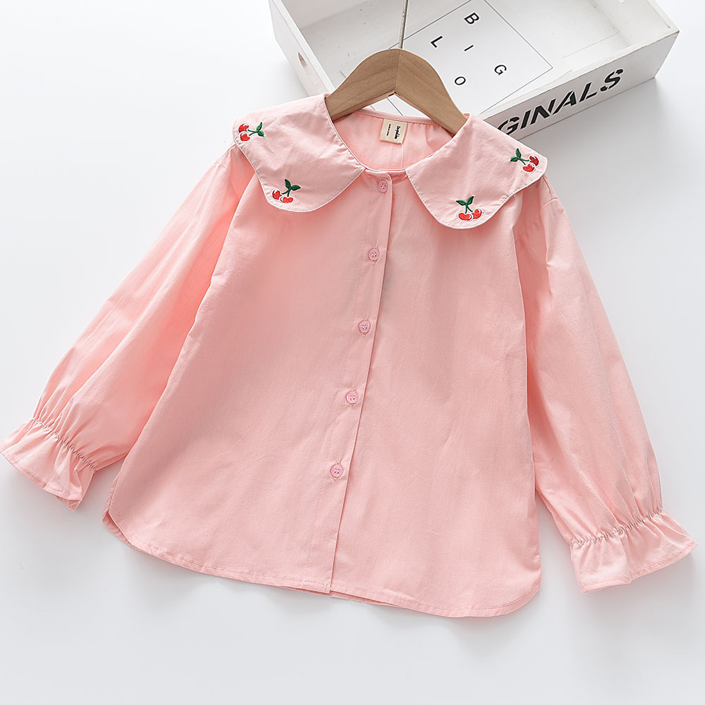 2023春季新款 樱桃绣花大翻领 女童纯棉长袖衬衫