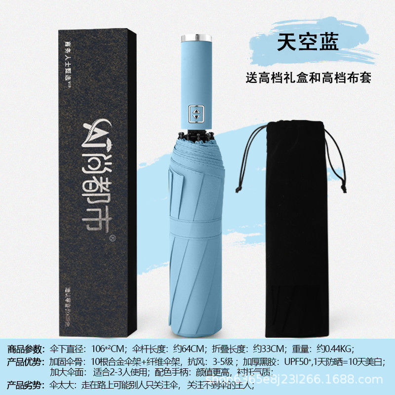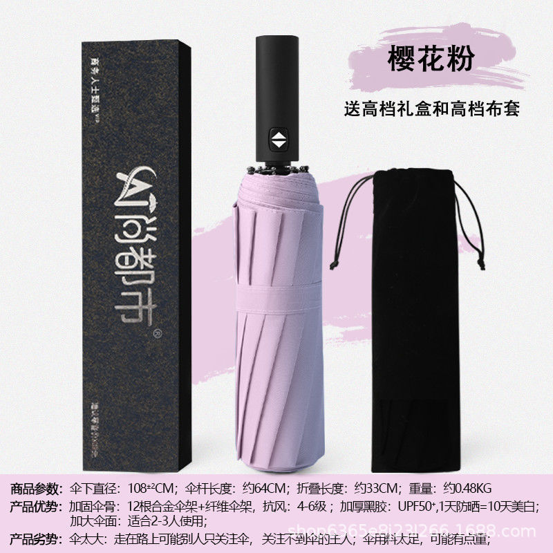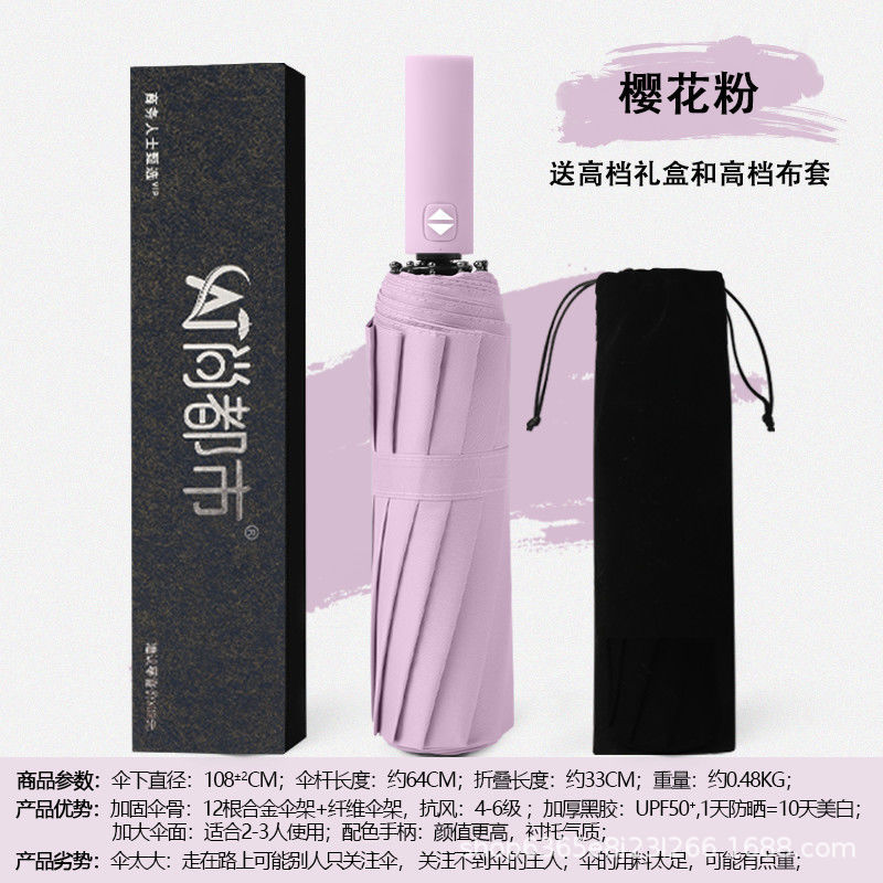 자동 우산 접히는 자동 우산 견고하고 튼튼한 우산 남성과 여성 및 학생을위한 태양 우산 맑고 비 이중 사용 태양 보호 검은 접착제스토어 가기