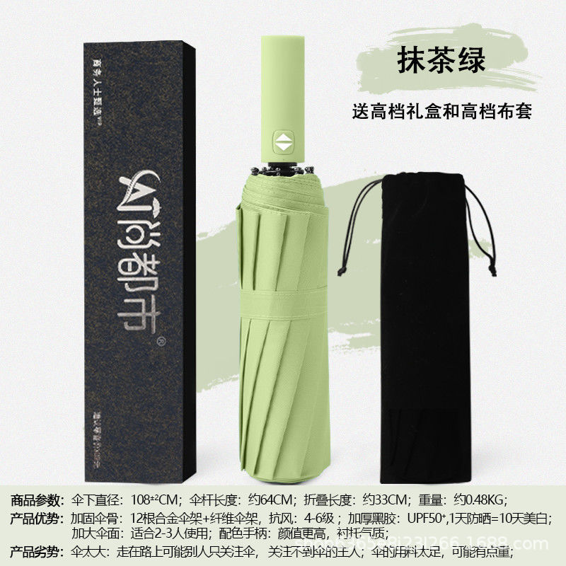 • 강화된 12본 말차 녹색 우산 [선물 상자 없음]