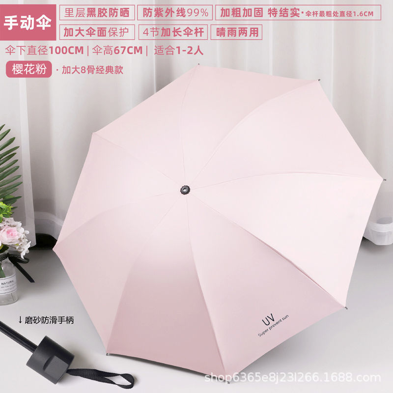 • 강화 수동 8 본 라이트 핑크 우산 [선물 상자 없음]