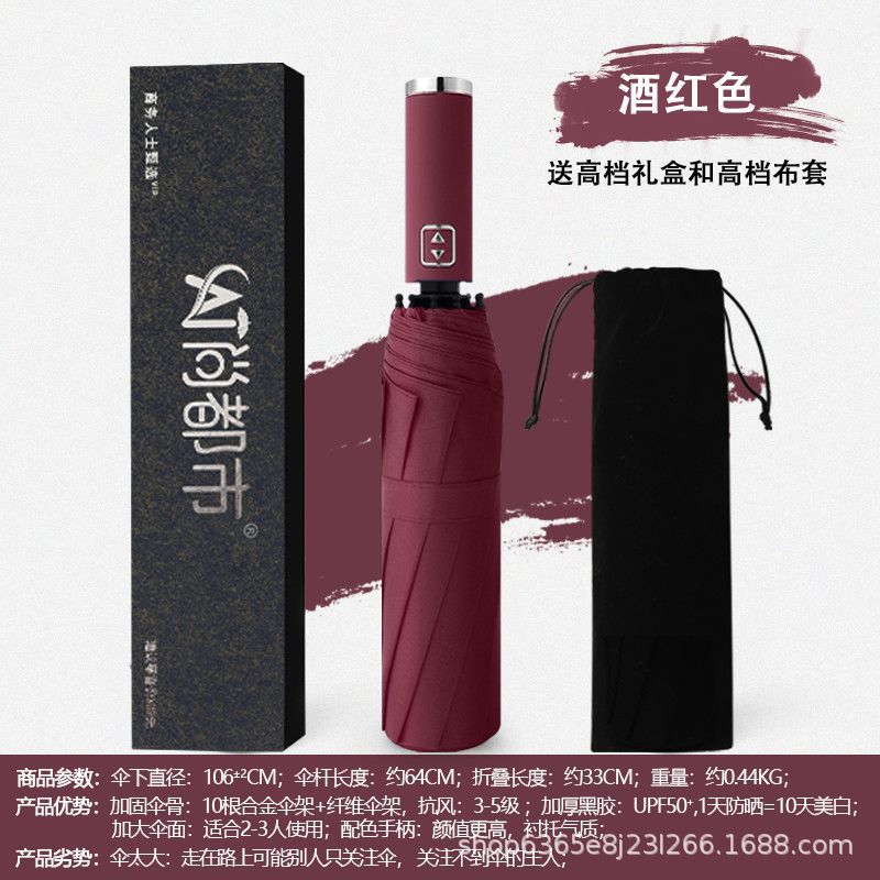 • 자동 8 본 버건디 우산 [선물 상자 없음]