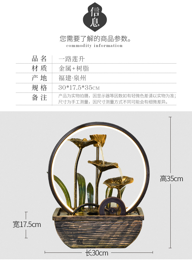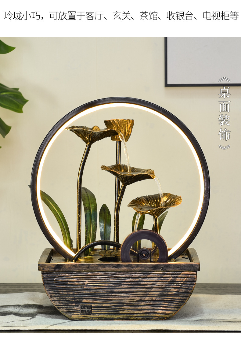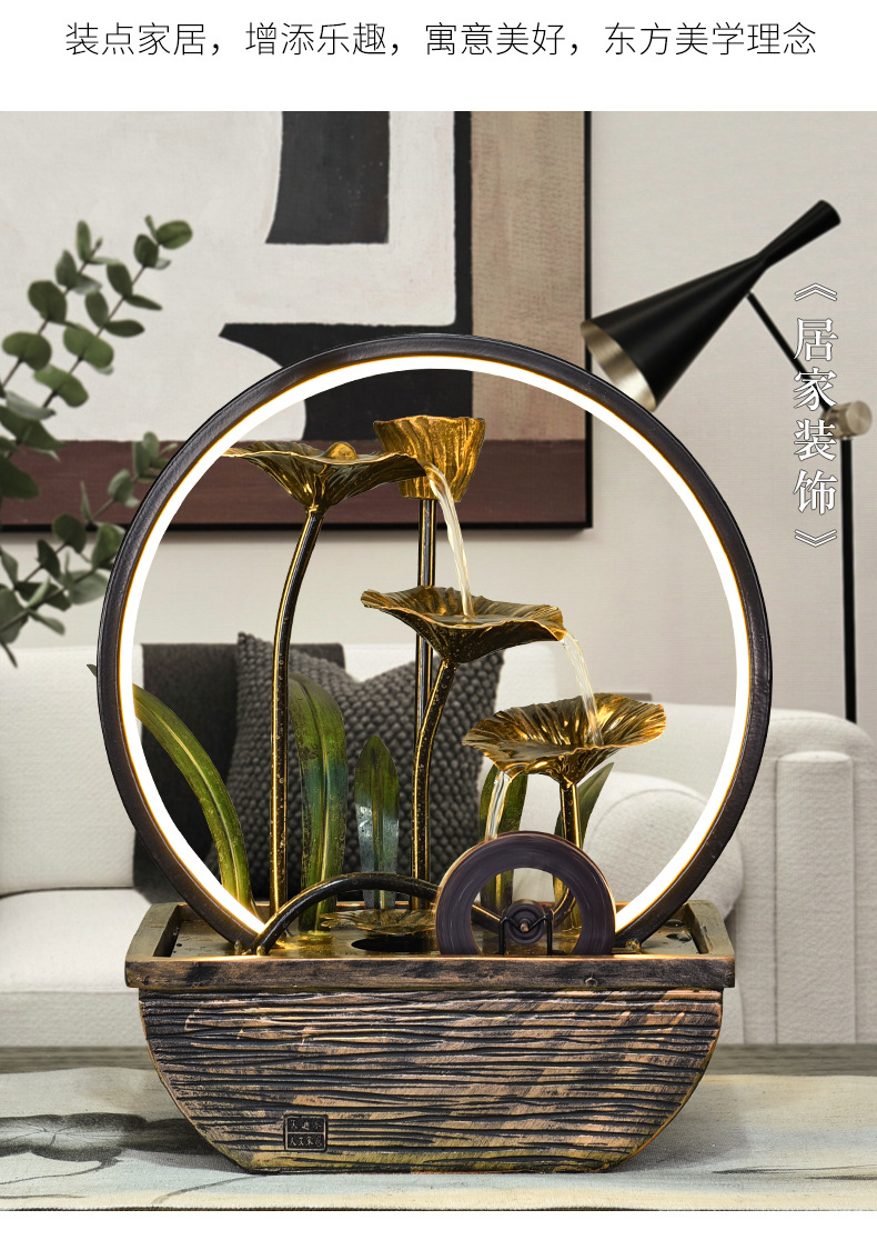 행운의 순환 물 바위 분수 장식품 물바퀴 실내 새로운 중국 풍경 집들이 새 집 달리는 선물