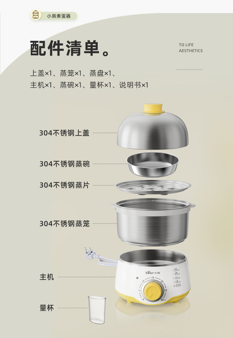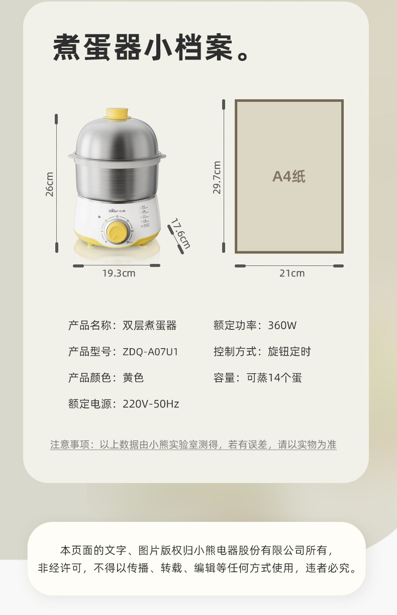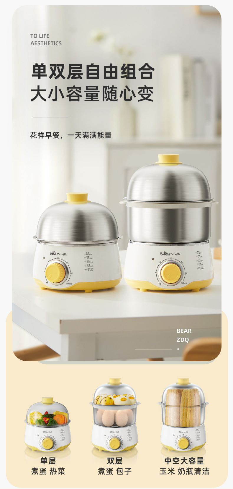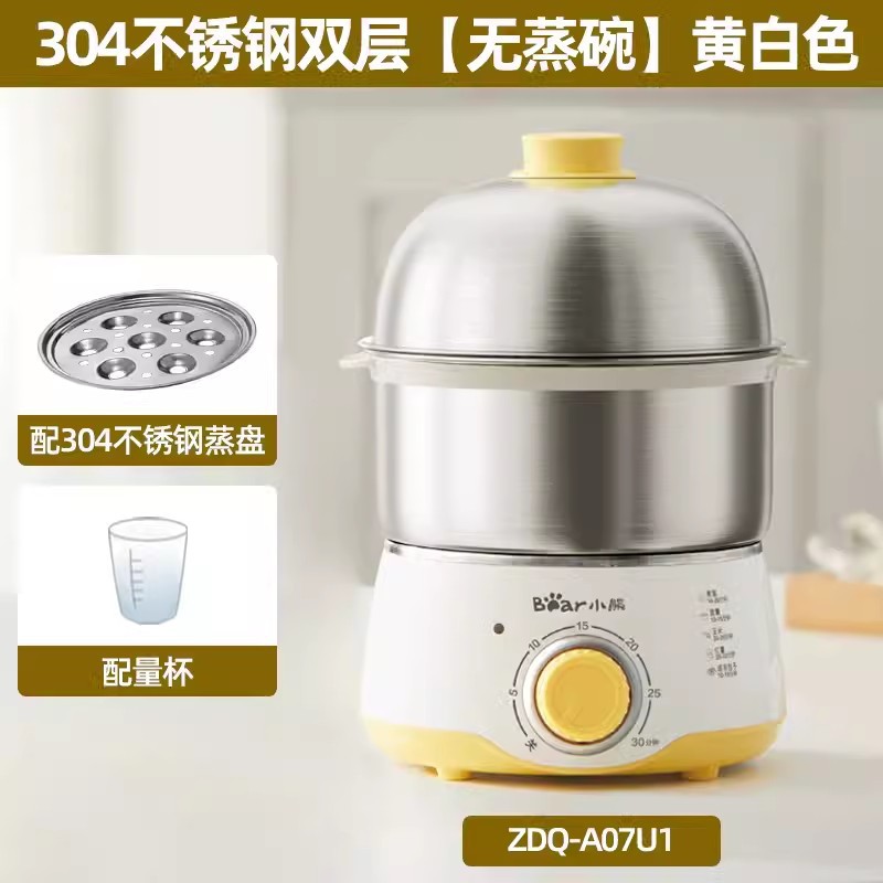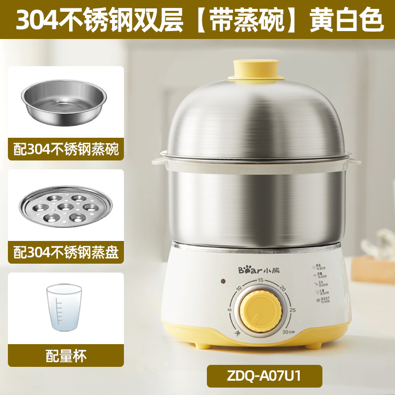 곰 계란 보일러 ZDQ-A07U1 더블 레이어 미니 타이밍 스테인레스 스틸 계란 증기선 계란 증기선 아침 식사스토어 가기