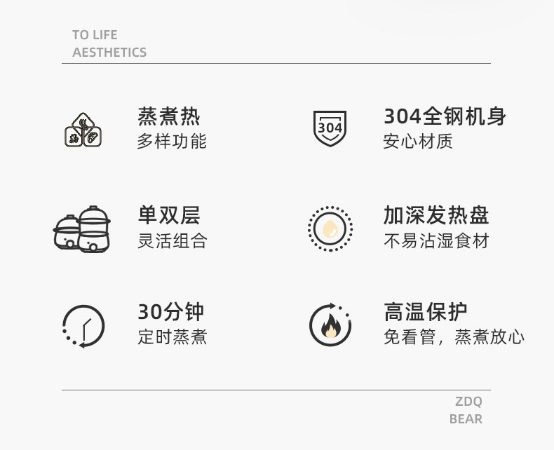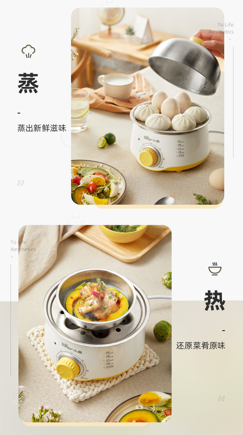 곰 계란 보일러 ZDQ-A07U1 더블 레이어 미니 타이밍 스테인레스 스틸 계란 증기선 계란 증기선 아침 식사