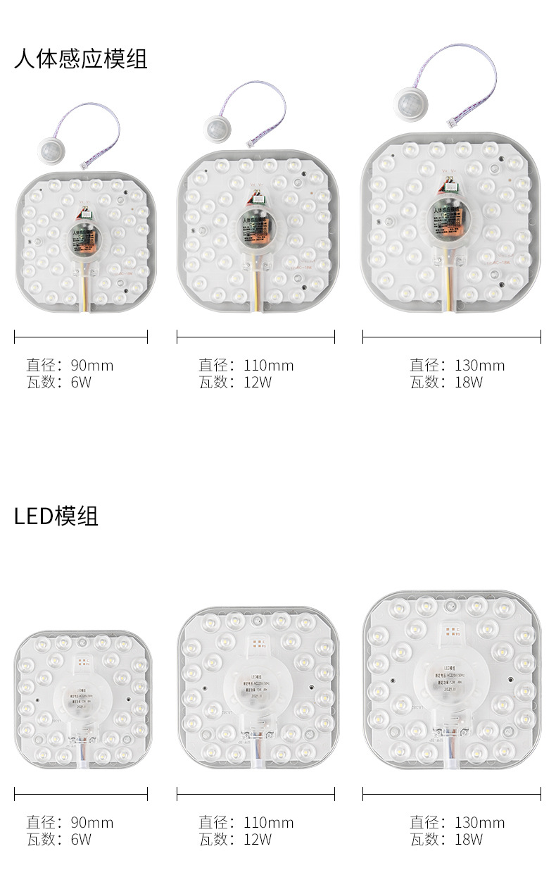 • [10 팩] 사각 음향 조명 제어 유도 모듈 6W 백색광