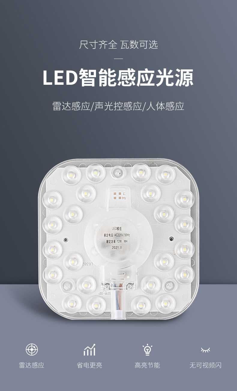 • [5 팩] 사각 음향 조명 제어 유도 모듈 12W 백색광