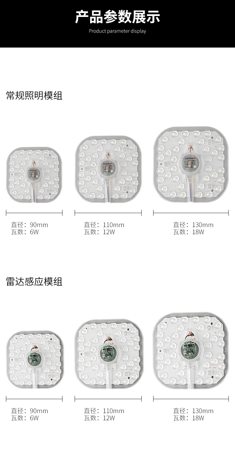 • [10 팩] 스퀘어 레이더 인체 유도 모듈 18W 화이트 라이트