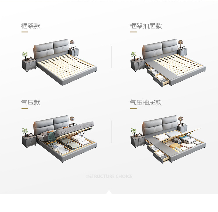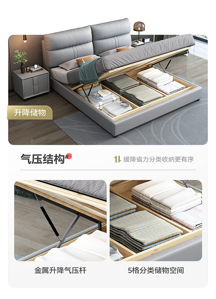 사용자 정의 이탈리아 스타일 간단한 1.8 m 부드러운 침대 1.5 m 더블 마스터 침실 웨딩 침대 가구 기압 보관 높은 상자 가죽 침대스토어 가기