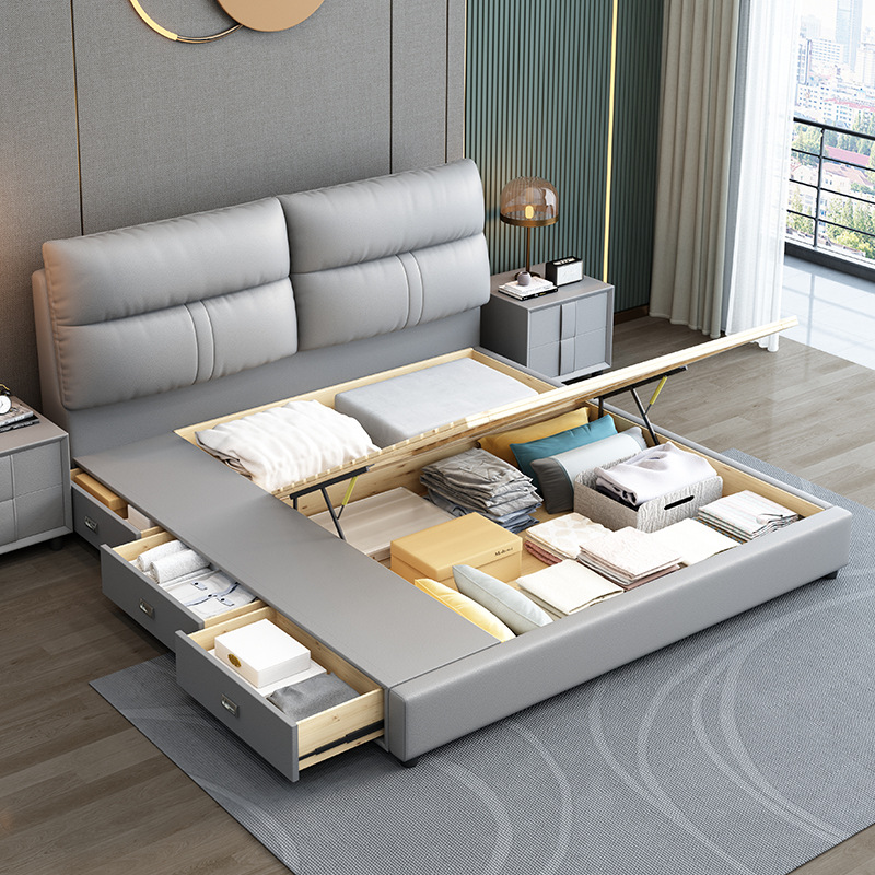 사용자 정의 이탈리아 스타일 간단한 1.8 m 부드러운 침대 1.5 m 더블 마스터 침실 웨딩 침대 가구 기압 보관 높은 상자 가죽 침대