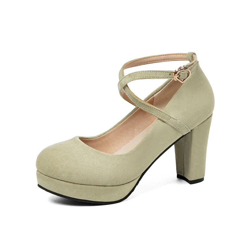 30-48 사이즈 신발 봄 새로운 라운드 헤드 두꺼운 굽 신발 여성 복고풍 하이힐 메리 제인 신발 해외 무역 신발스토어 가기