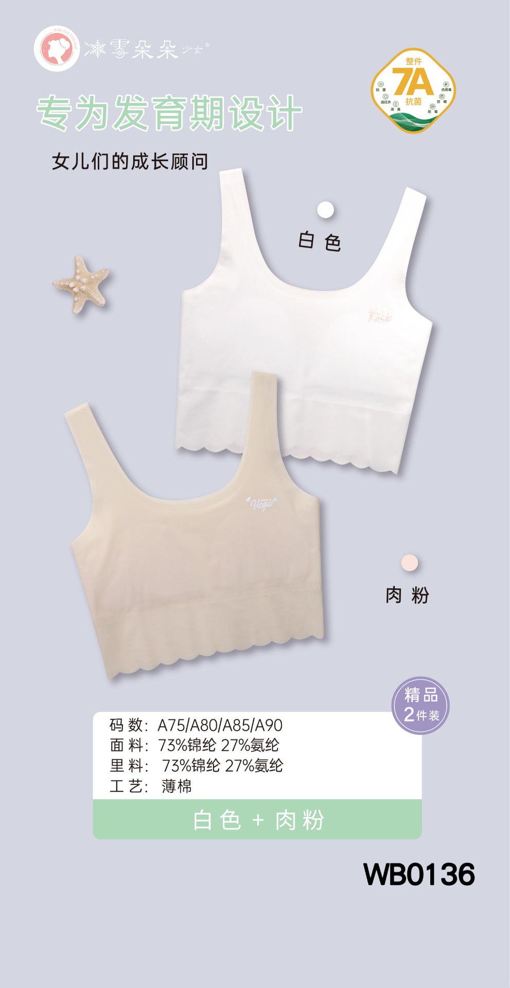 얼음과 눈 꽃 소녀 브라 모달 속옷베이스 조끼 순수 면화 개발 중학교 고등학생 Traceless