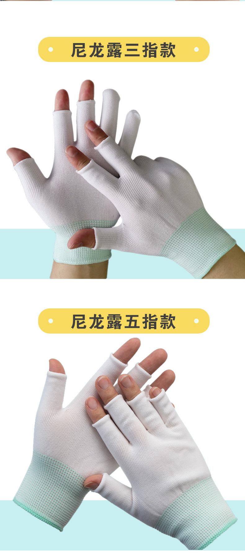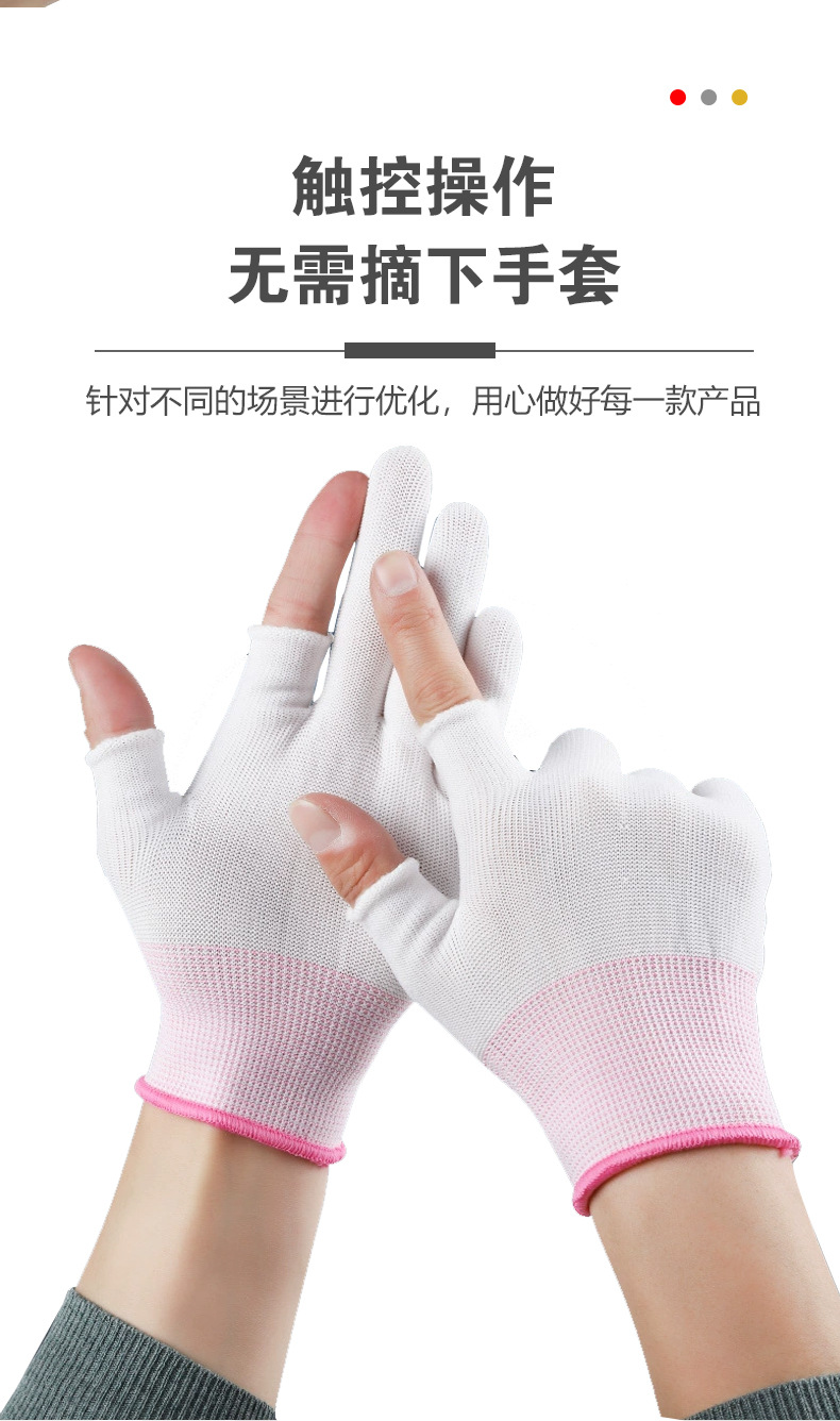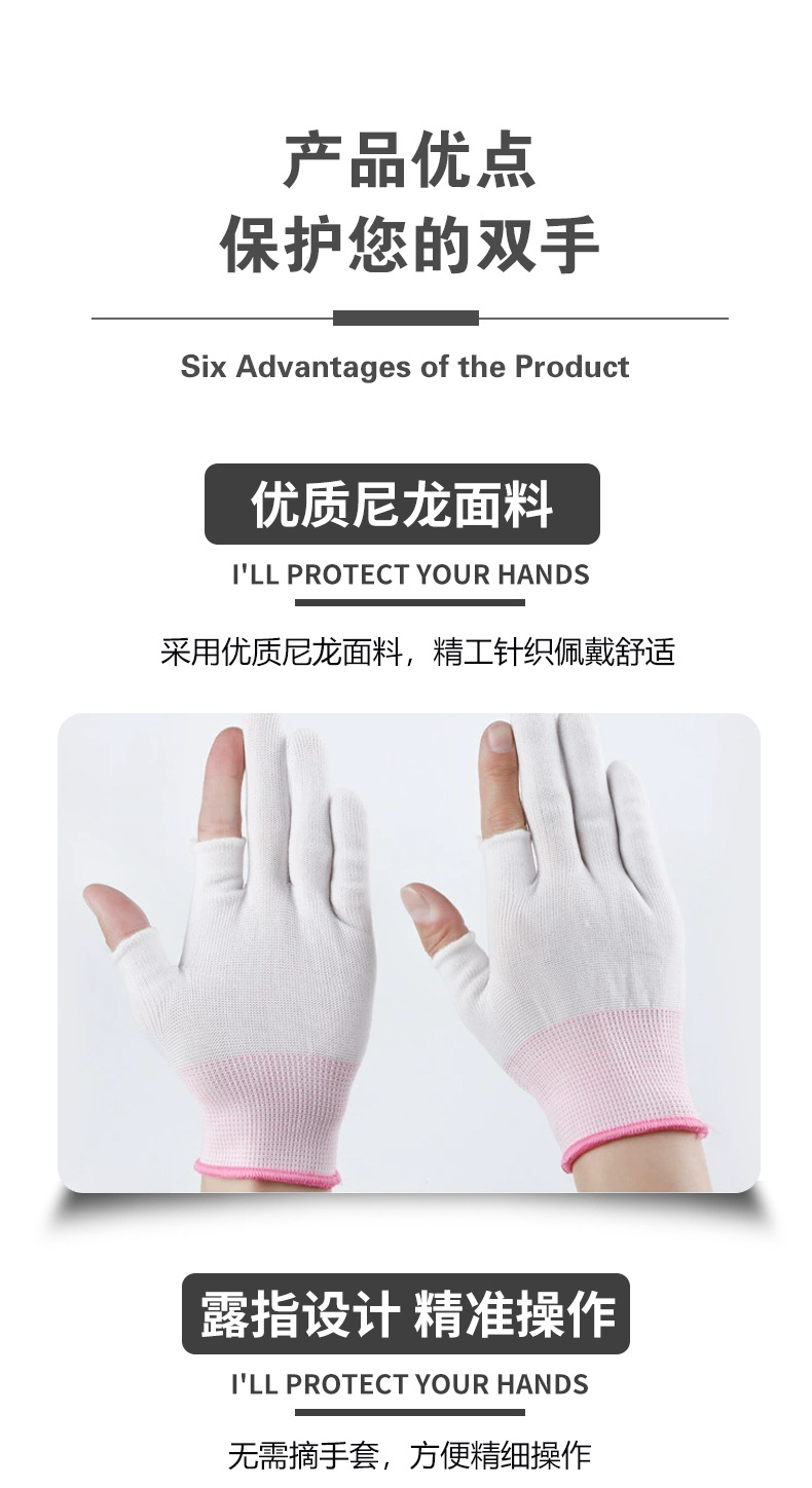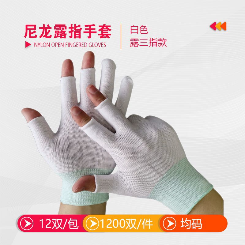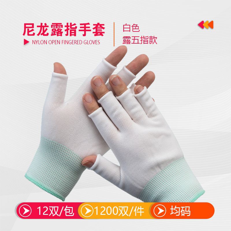 차 따기 장갑 반 손가락 노출 5 손가락 얇은 미끄럼 방지 오픈 핑거 통기성 흰색 나일론 남성용 및 여성용 터치 스크린 보호 장갑스토어 가기