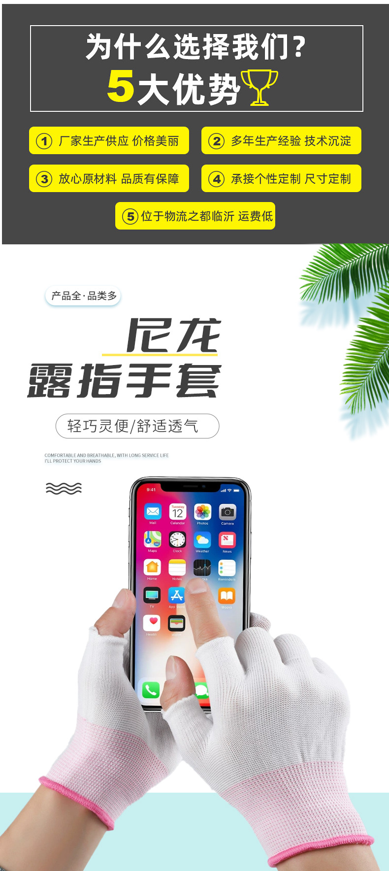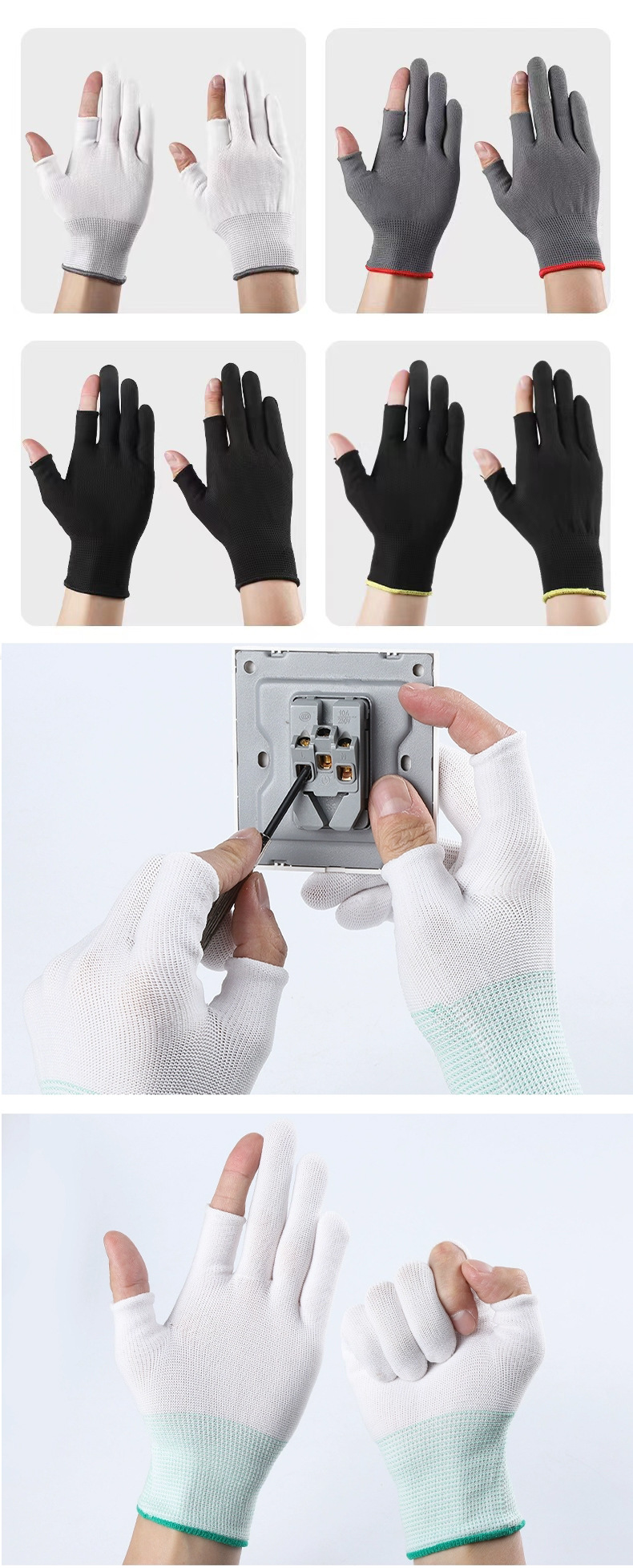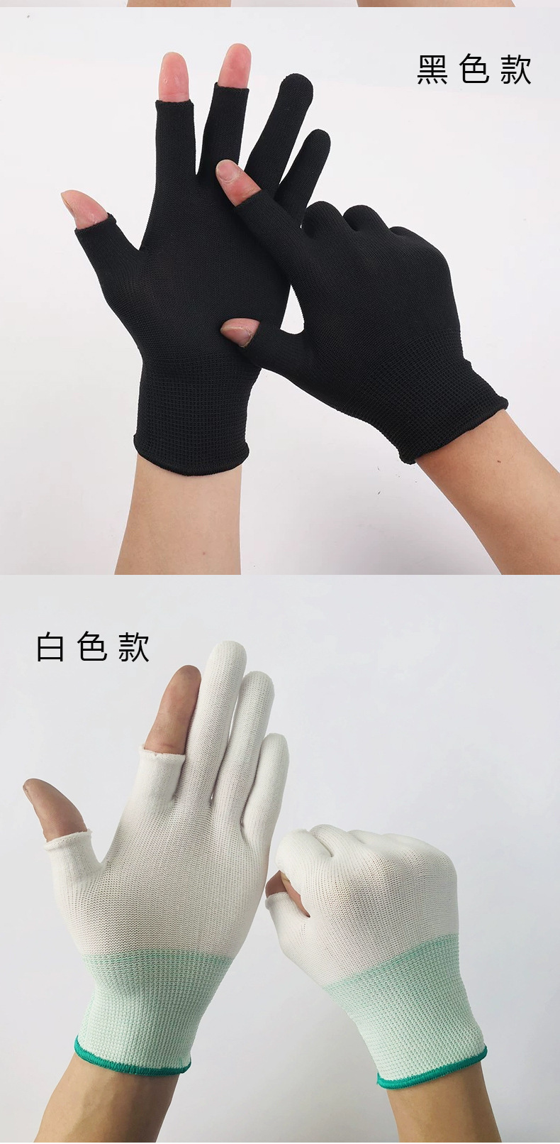 차 따기 장갑 반 손가락 노출 5 손가락 얇은 미끄럼 방지 오픈 핑거 통기성 흰색 나일론 남성용 및 여성용 터치 스크린 보호 장갑스토어 가기