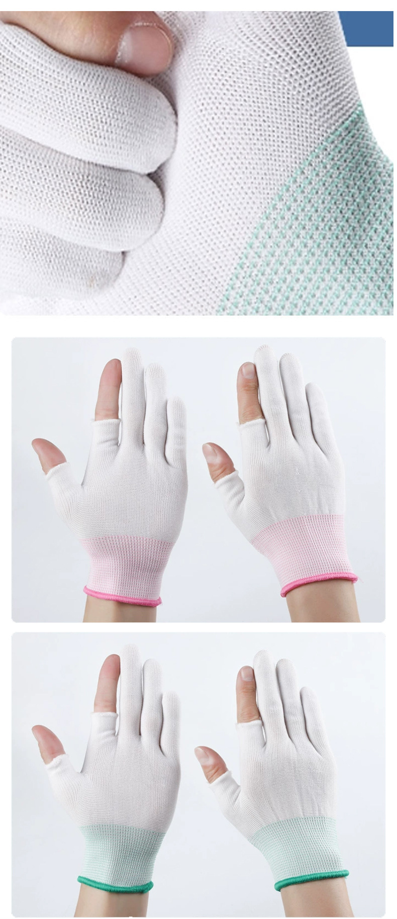 차 따기 장갑 반 손가락 노출 5 손가락 얇은 미끄럼 방지 오픈 핑거 통기성 흰색 나일론 남성용 및 여성용 터치 스크린 보호 장갑