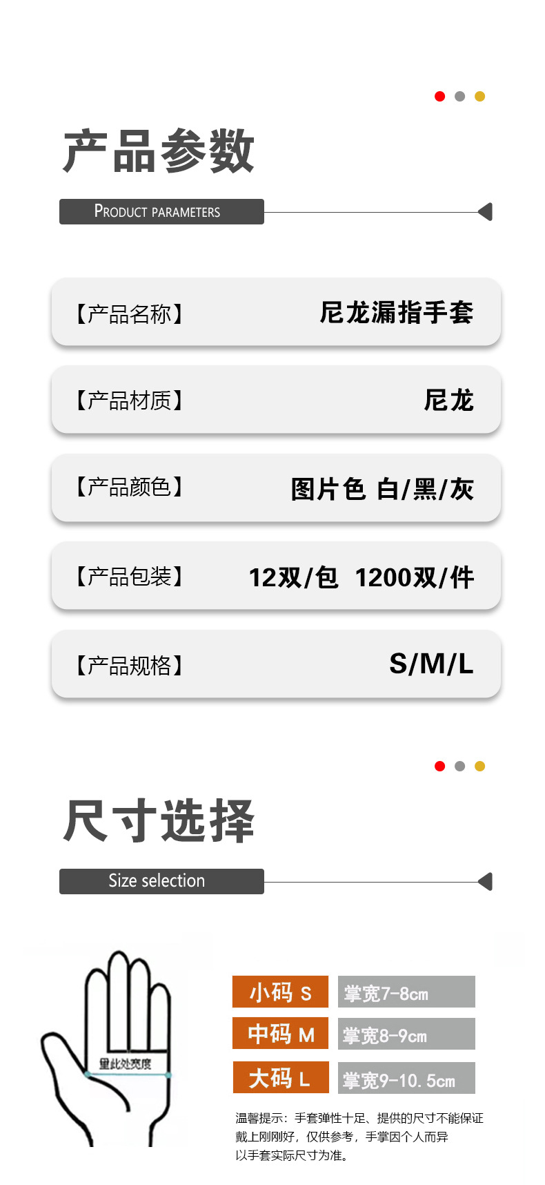 • 그레이 듀 세 손가락 나일론 장갑