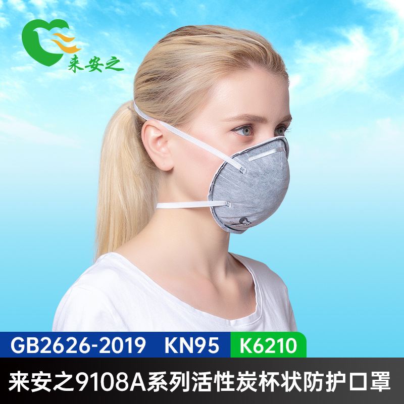 品名:来安之KN95 活性炭工业防护杯状4层无纺布口罩防粉尘颗粒物K6210