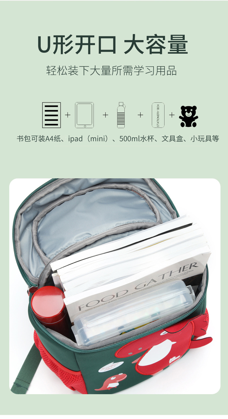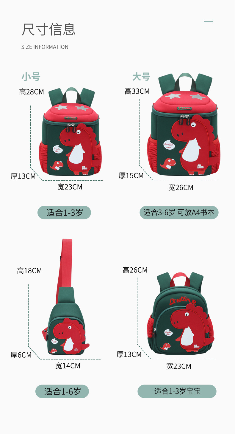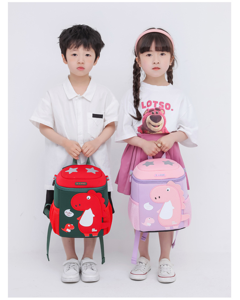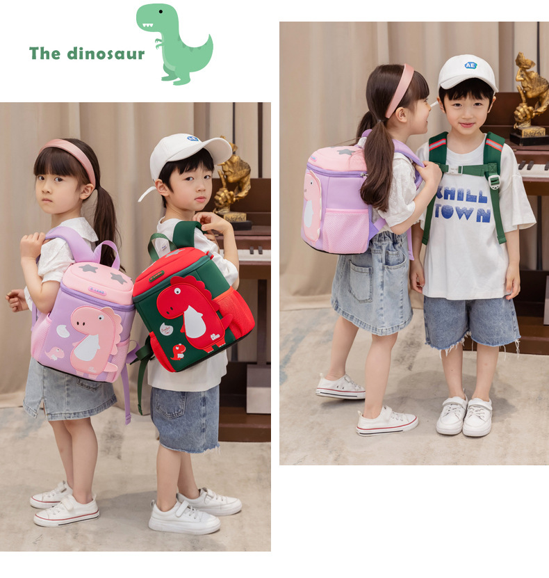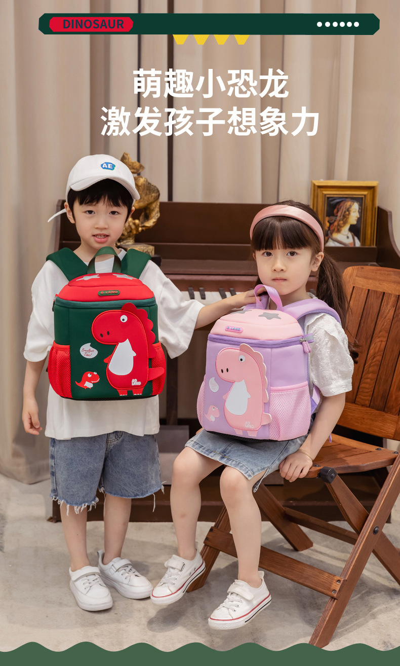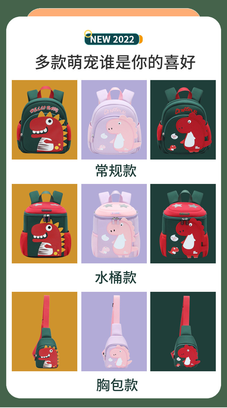 새로운 유치원 가방 귀여운 공룡 가방 만화 버킷 가방 통기성 방수 다이빙 소재 가죽 크로스 바디 가방