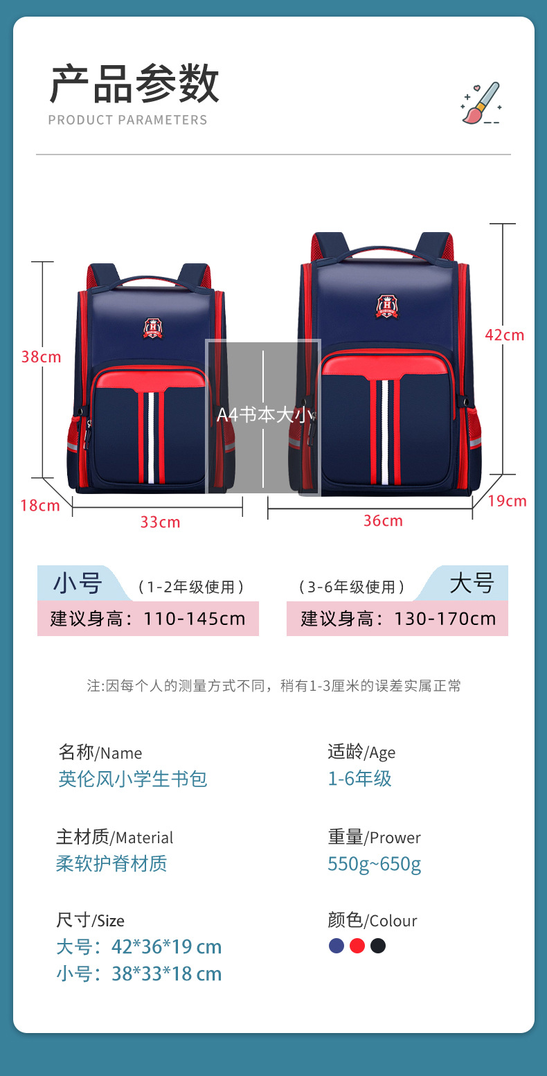 어린이 Schoolbag 영국 스타일 1-6 학년 남성과 여성 같은 스타일 공간 가방 안티 압력 척추 보호 학교 가방 도매 대용량스토어 가기