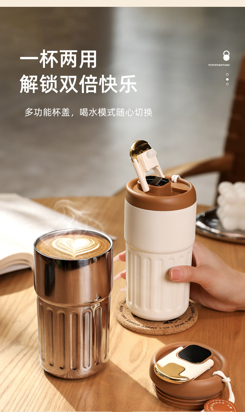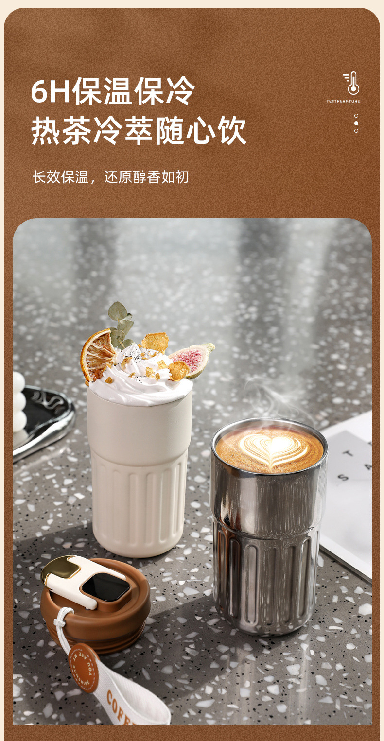 여성용 316 스테인레스 스틸 고급 보온병 컵, 고급스러운 맞춤형 커피 컵, 차량용 휴대용 냉수 컵(스트랩 포함)