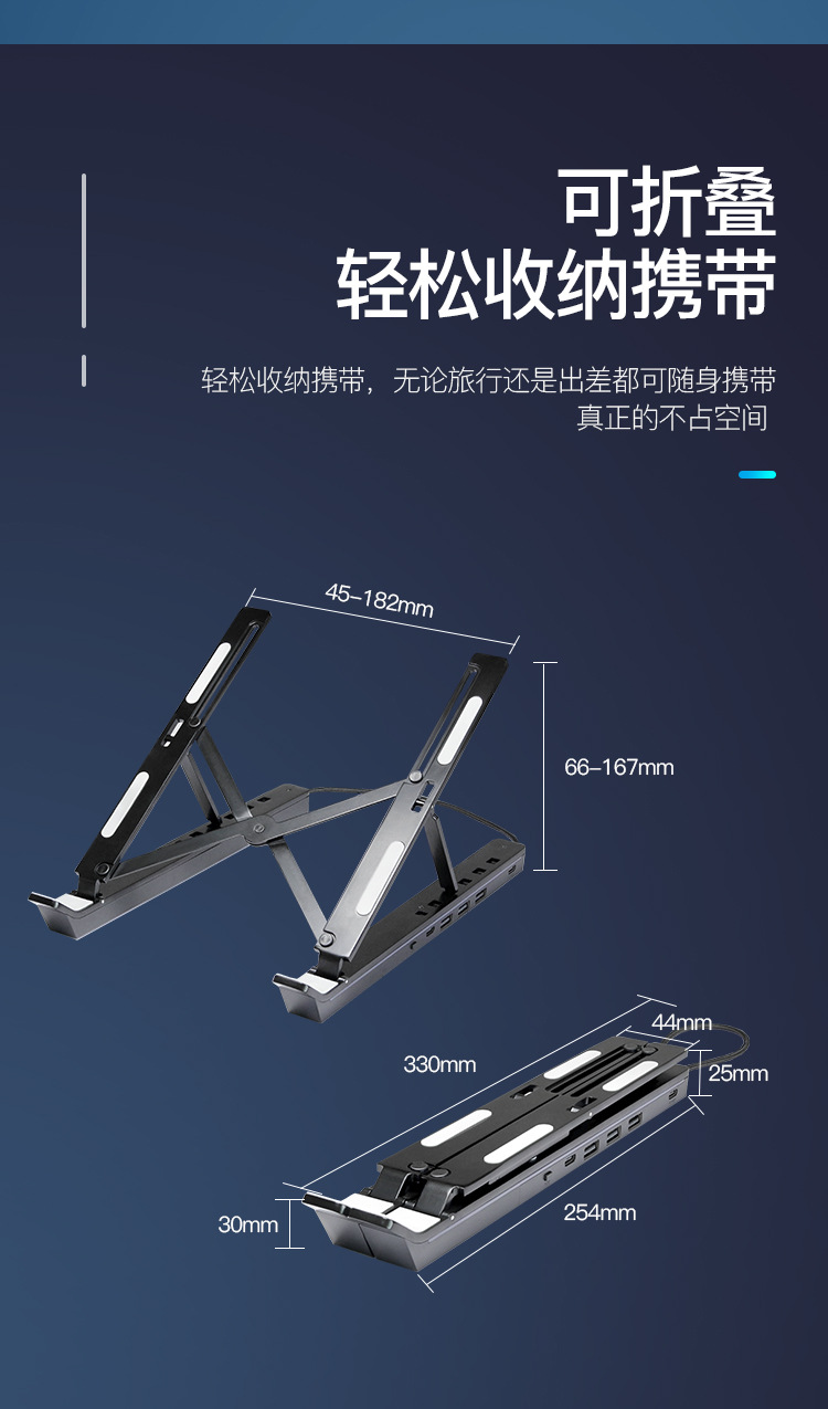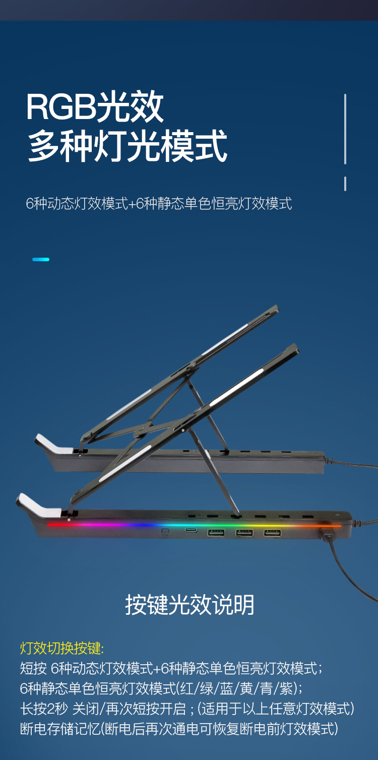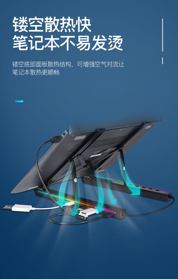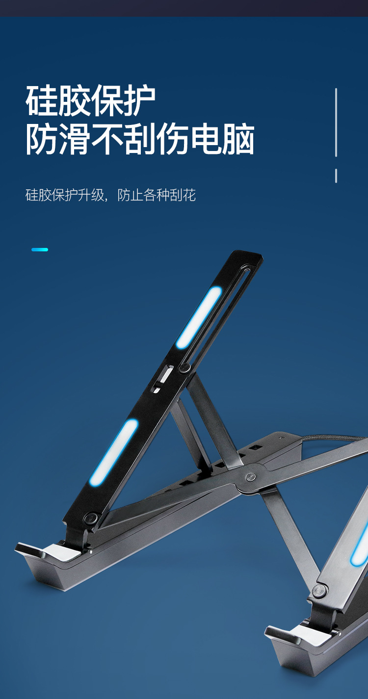 RGB 발광 확장 도크 usb 데스크탑 노트북 스탠드 알루미늄 합금 접이식 냉각 태블릿 스탠드