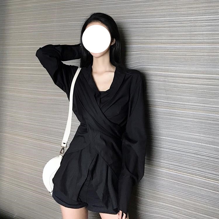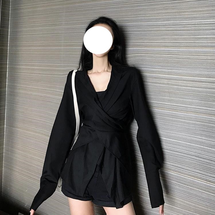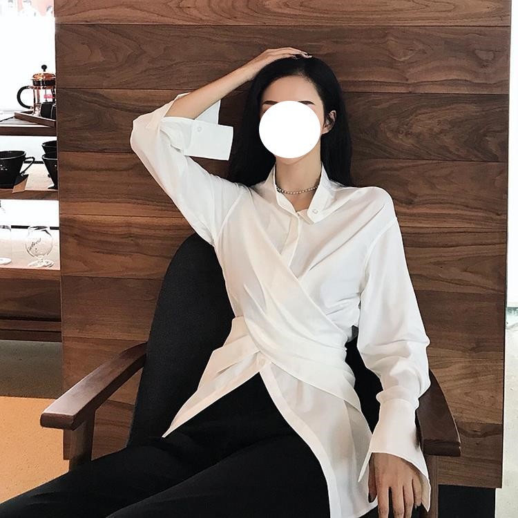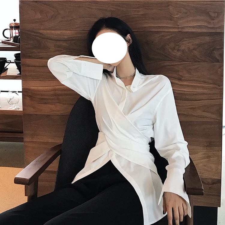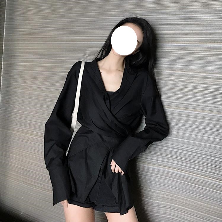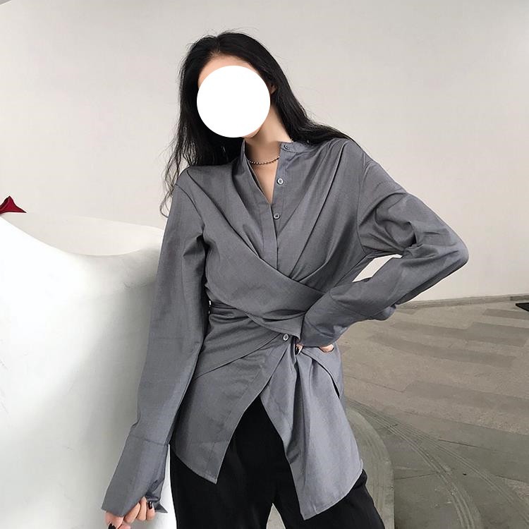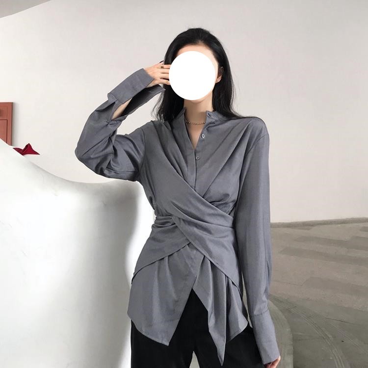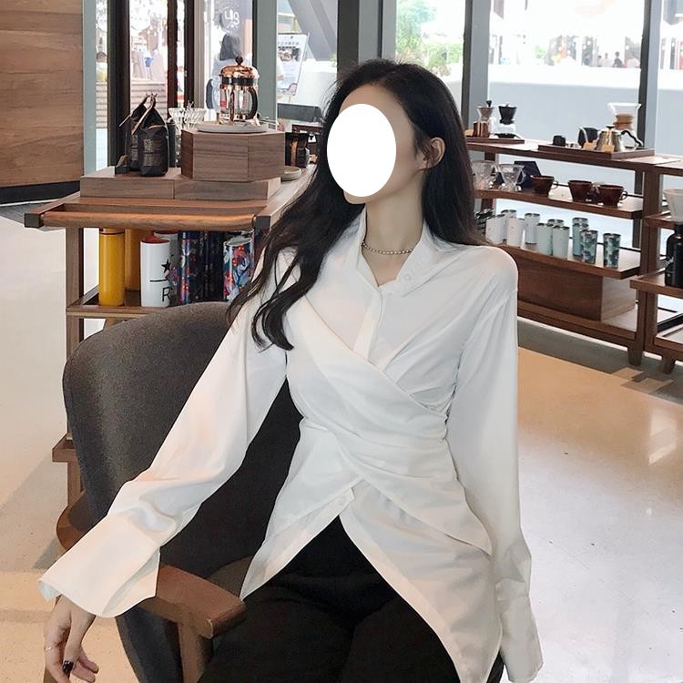 여성을위한 계획적인 디자인 세련된 셔츠 2025 한국어 버전 ins 슈퍼 핫 bf 느슨한 불규칙한 슬리밍 긴팔 탑스토어 가기