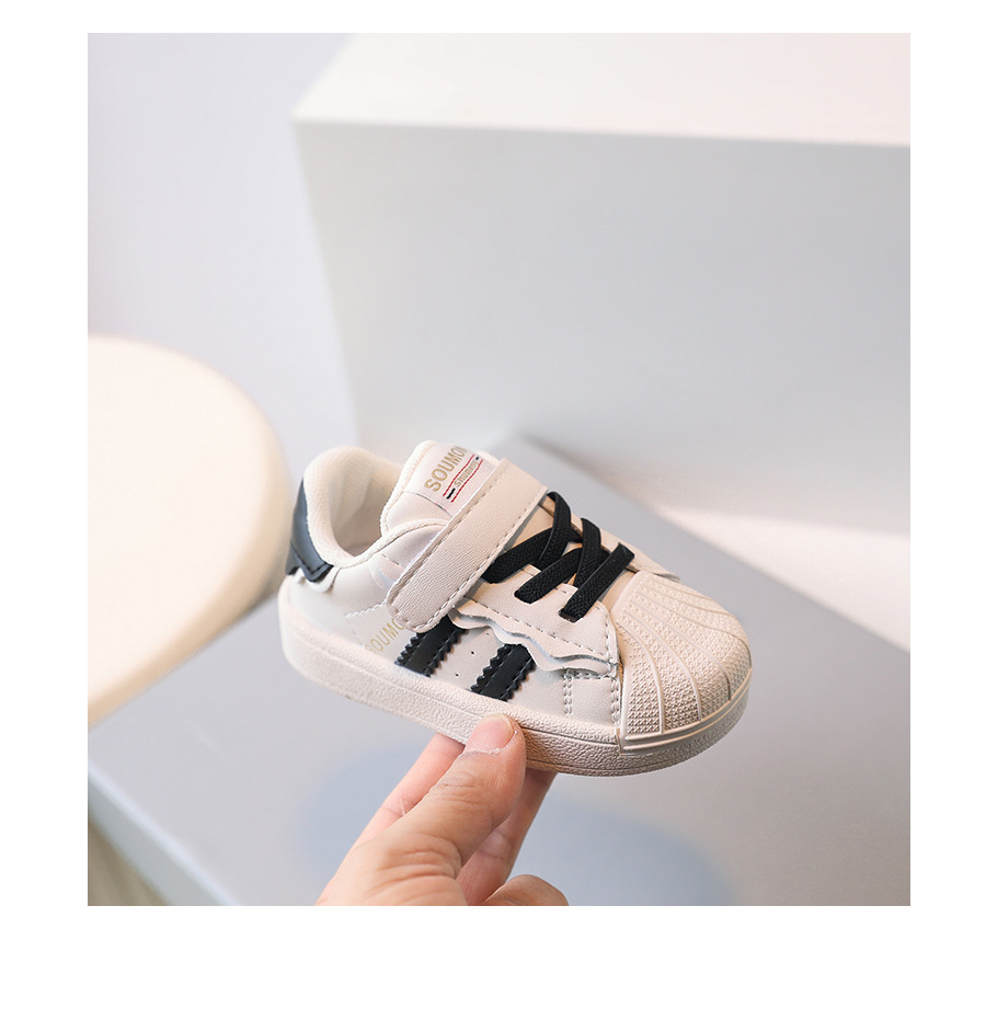 2023 아기 신발 봄 새로운 아기 부드러운 단독 유아 신발 소년과 소녀 쉘 헤드 안티 킥 캐주얼 흰색 신발스토어 가기