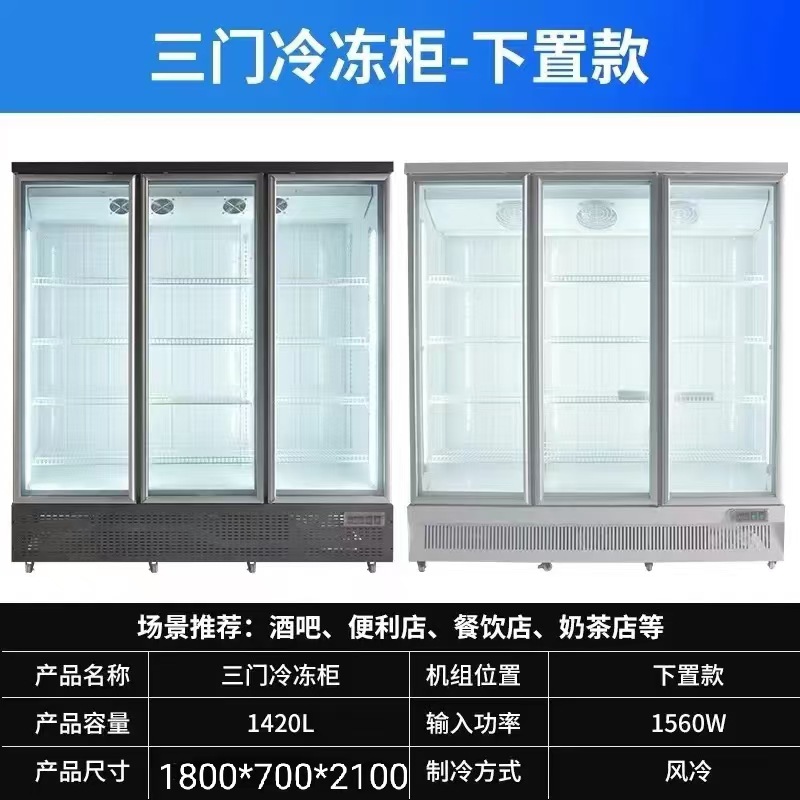 냉동 디스플레이 캐비닛 상업용 빠른 냉동 캐비닛 냉동 고기 두리안 3 도어 수직 냉장고 양문 디스플레이 저온 냉동고