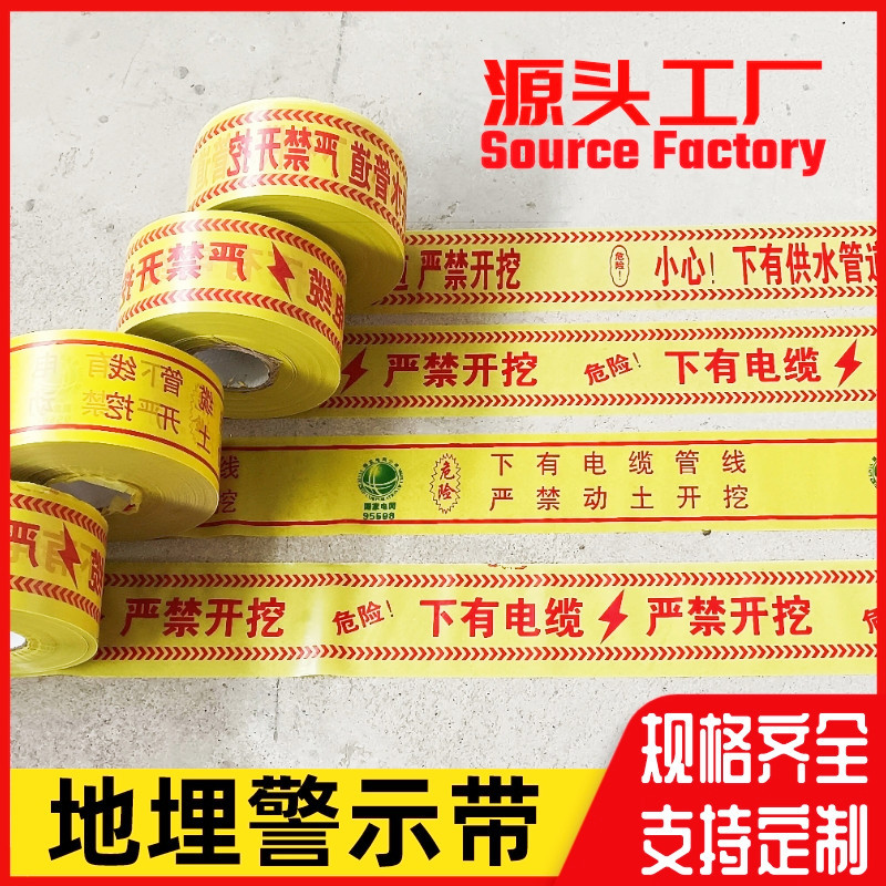 케이블 경고 테이프 묻힌 가스 및 석유 물 공급 파이프 라인 경고 테이프 감지 가능한 코트 PE 준비 경고 테이프스토어 가기