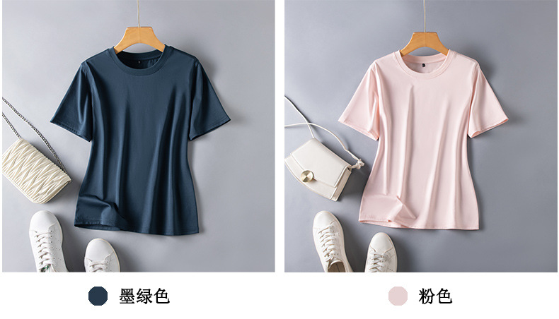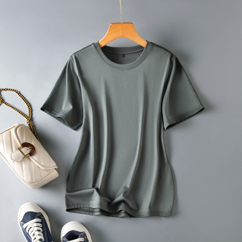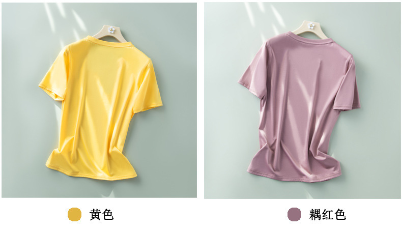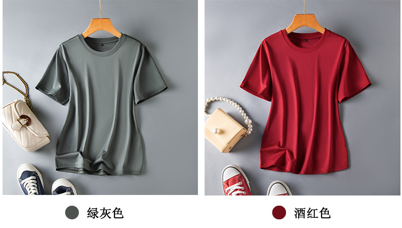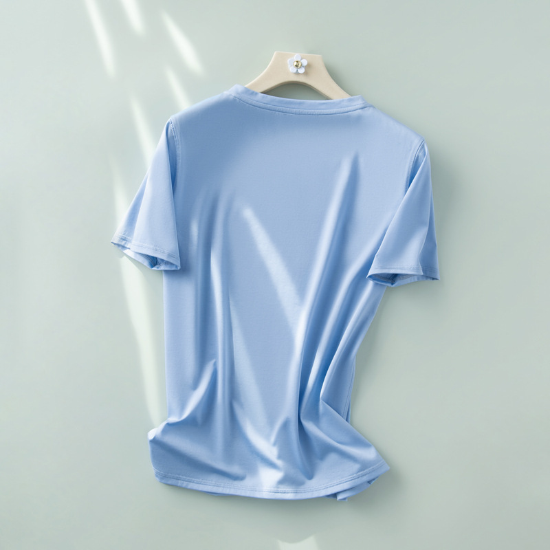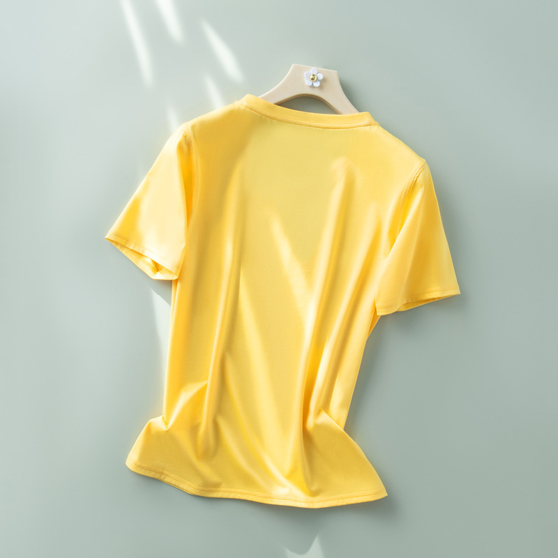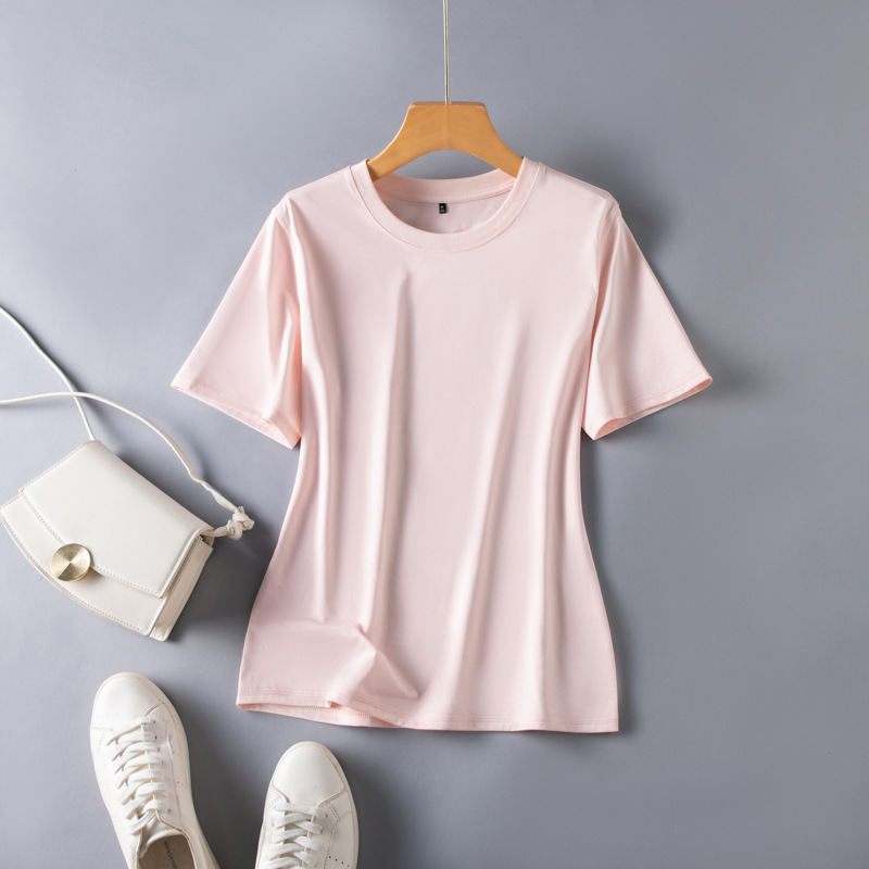 반팔 티셔츠 여성용 뽕나무 실크 라운드 넥 베이스 셔츠 2023 여름 옷 화이트 모든 매치 짧은 반팔 아이스 탑