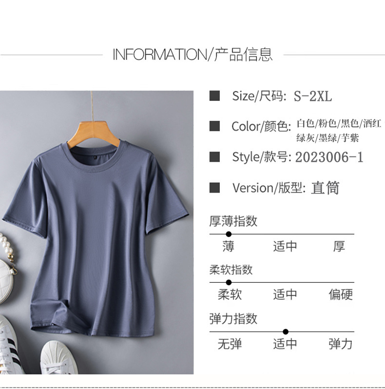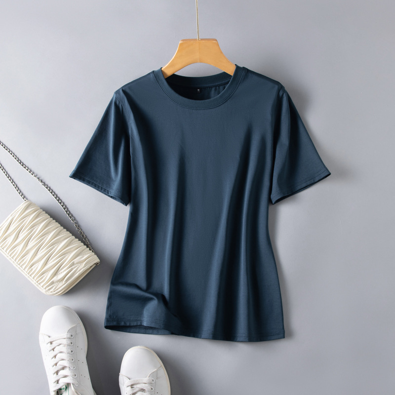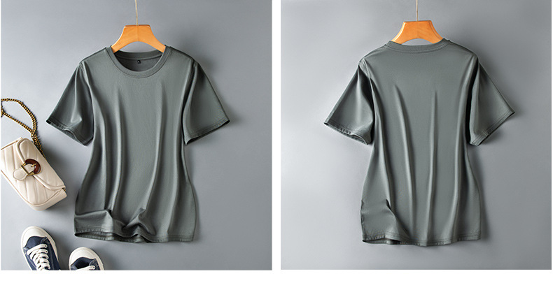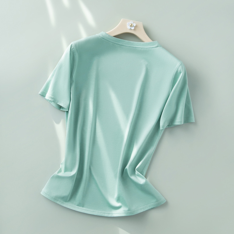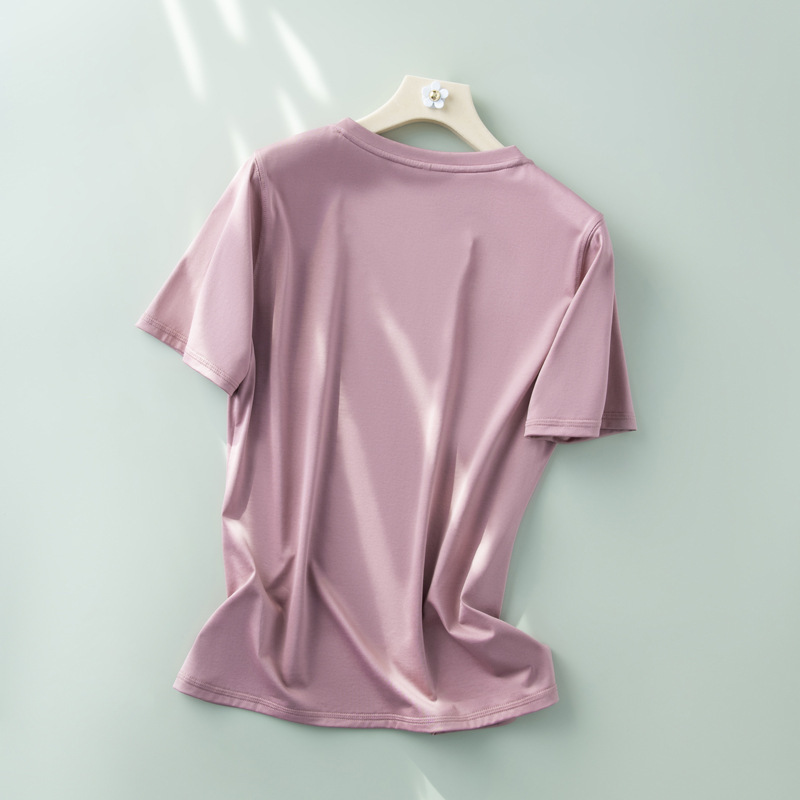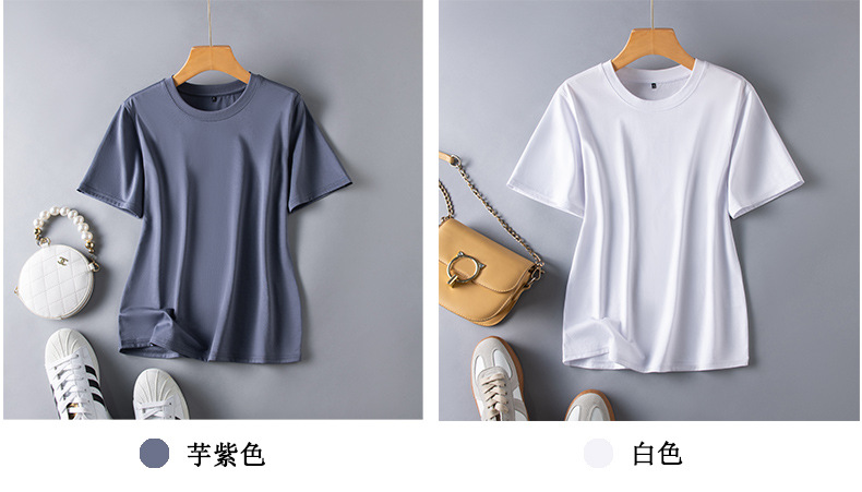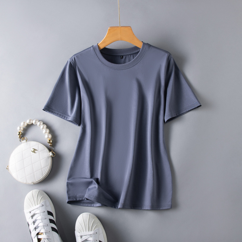 반팔 티셔츠 여성용 뽕나무 실크 라운드 넥 베이스 셔츠 2023 여름 옷 화이트 모든 매치 짧은 반팔 아이스 탑