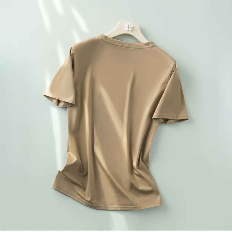 반팔 티셔츠 여성용 뽕나무 실크 라운드 넥 베이스 셔츠 2023 여름 옷 화이트 모든 매치 짧은 반팔 아이스 탑스토어 가기