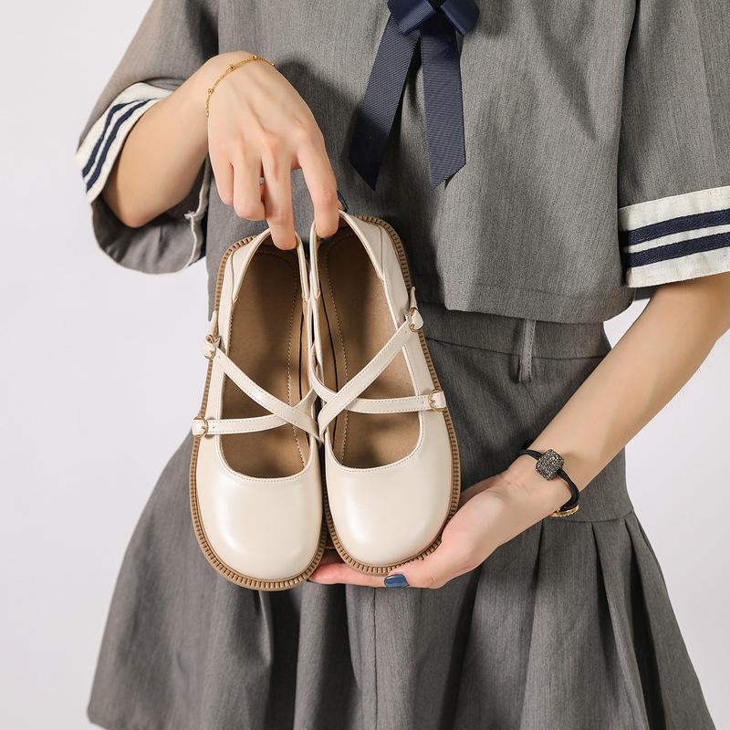 프랑스 스타일 메리 제인 작은 가죽 신발 여성 얕은 입 여름 2024 새로운 스타일 플랫 신발 영국 라운드 발가락 로퍼 여성 신발스토어 가기