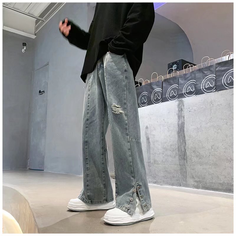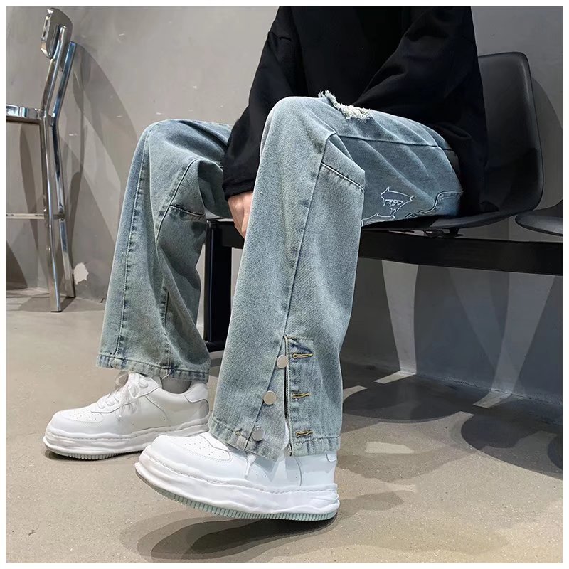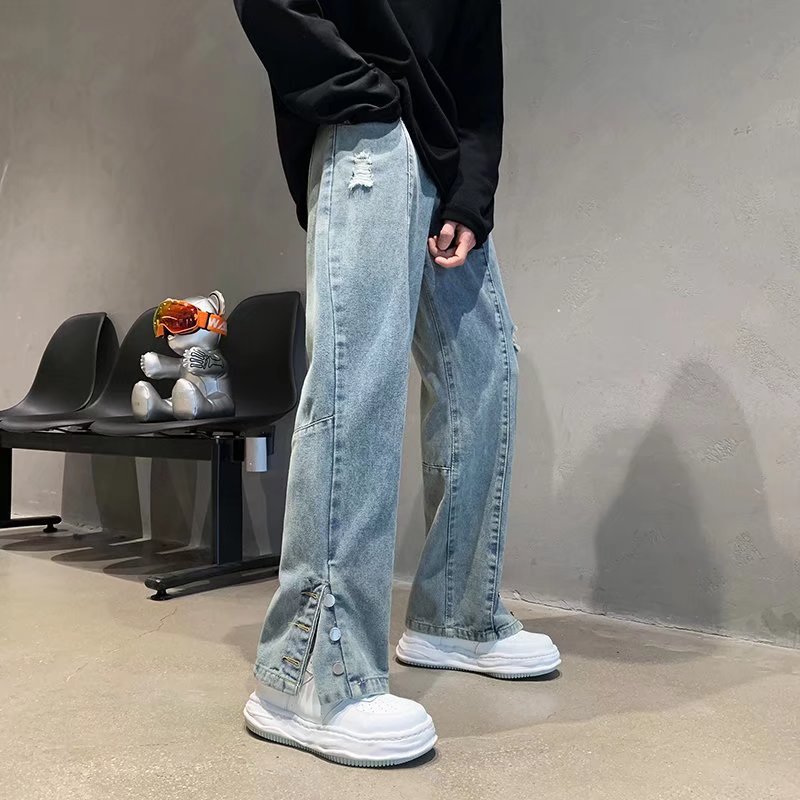 와이드 레그 진 남자의 봄 미국 스타일 복고풍 힙합 틈새 디자인 감각 하이 스트리트 분위기 패션 브랜드 캐주얼 바지스토어 가기