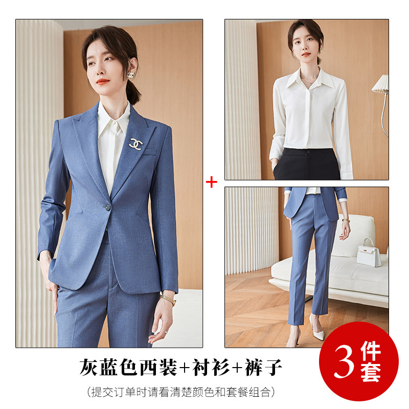 • 회색 파랑 세트 + 흰색 셔츠 + 회색 파랑 원피스 바지