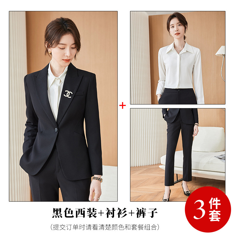 새로운 블랙 세트 원피스 여성의 전문 세트 슬림 핏 플러스 사이즈 고급 감각 작업복 캐주얼 재킷 원 버튼스토어 가기