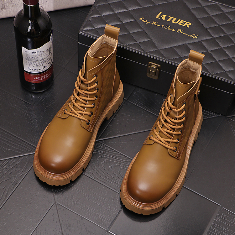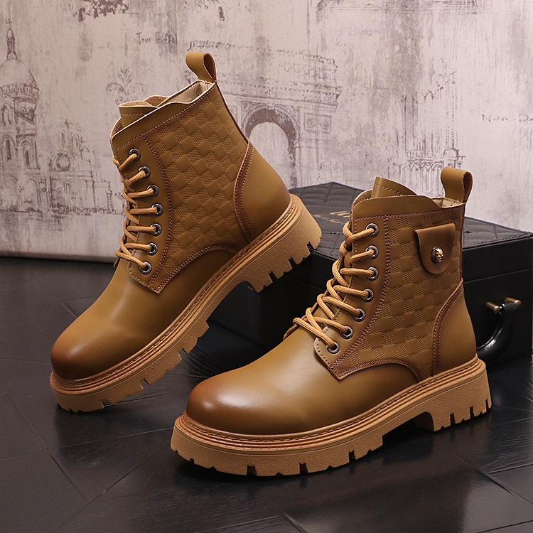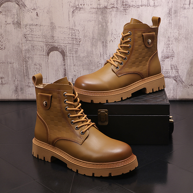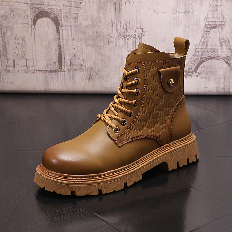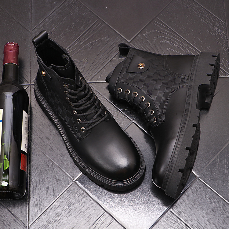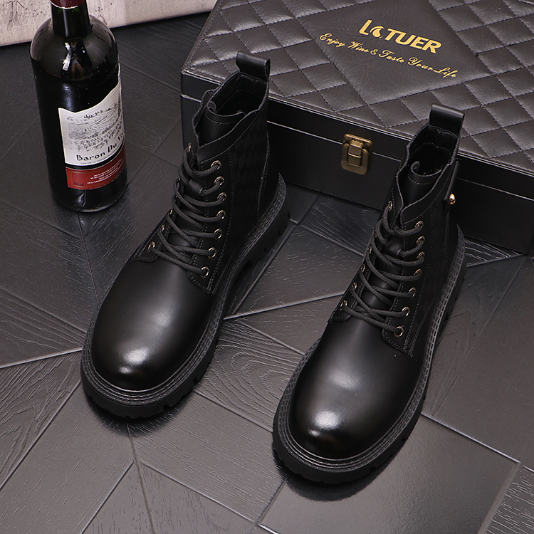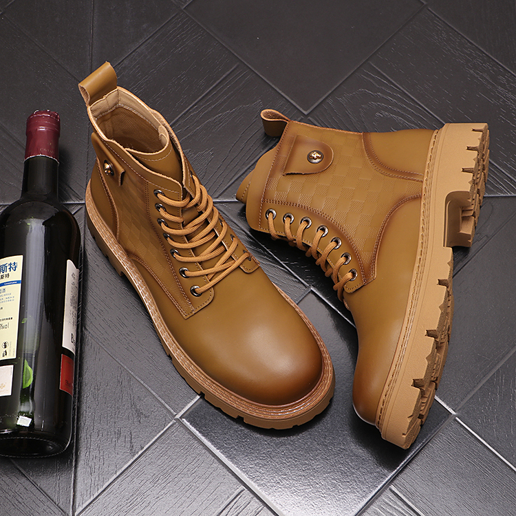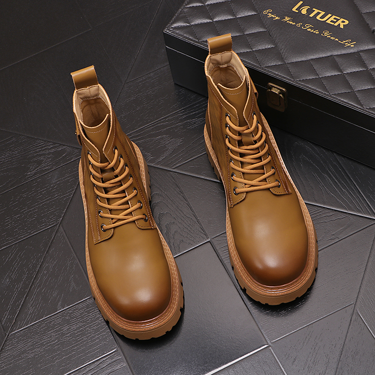 남자의 마틴 부츠 빈티지 캐주얼 남자 신발 라운드 발가락 내부 높이 증가 카우보이 부츠 영국 스타일 작업복 부츠 청소년 발목 부츠