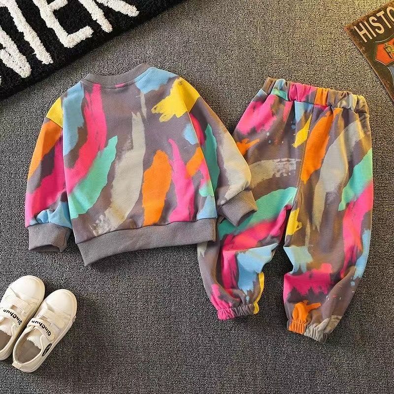 어린이 기모 스웨터 세트 새로운 소년 겨울 어린이 서양 스타일 따뜻한 스포츠 탑 투피스 0051