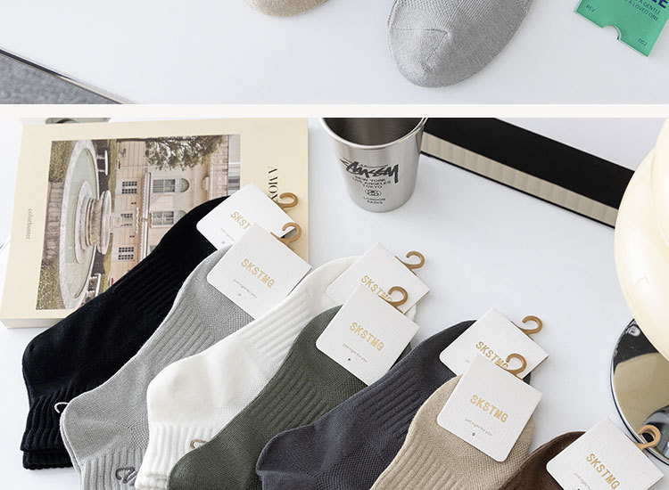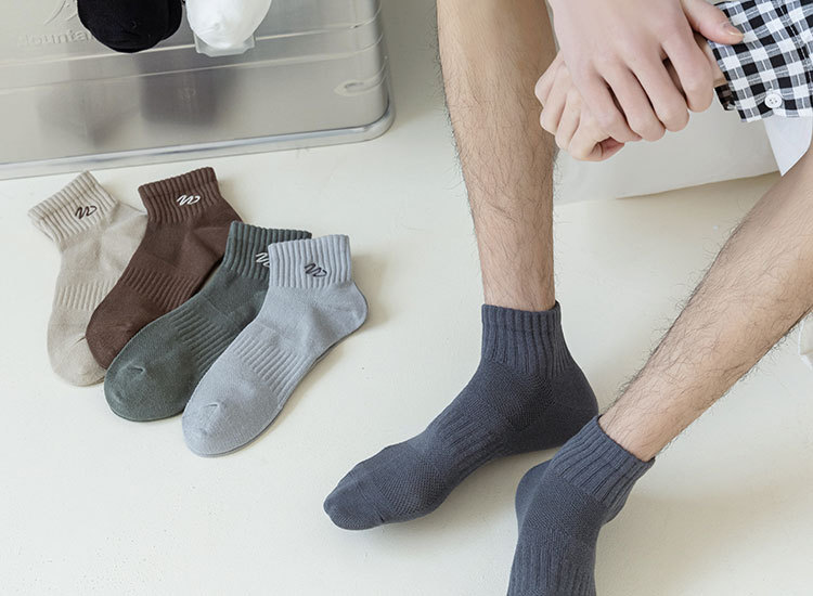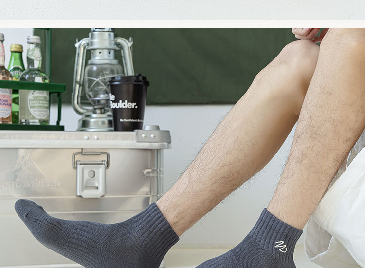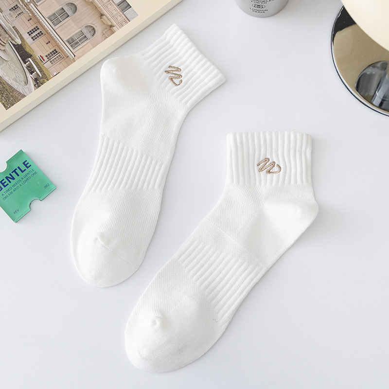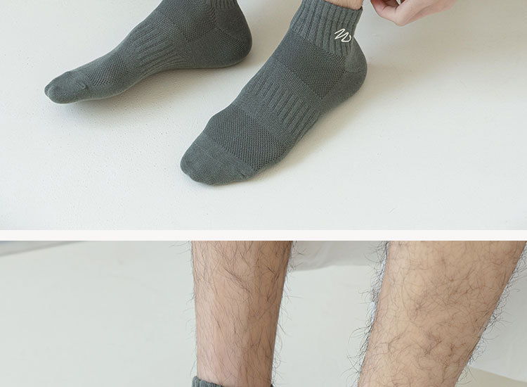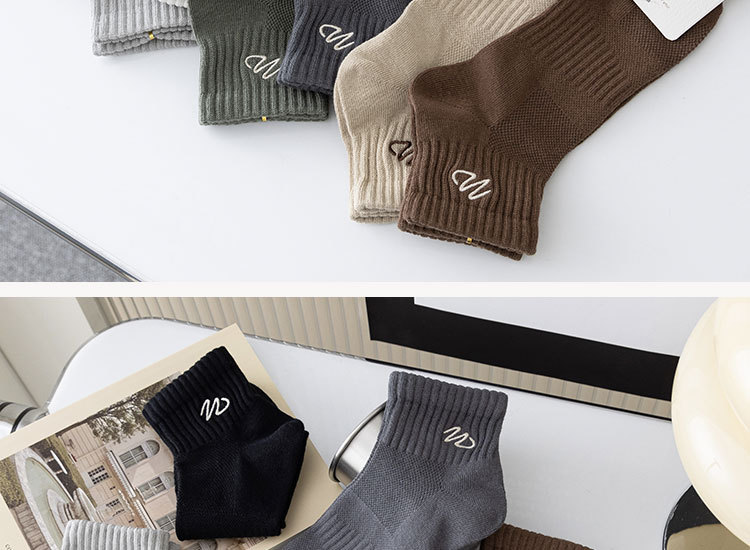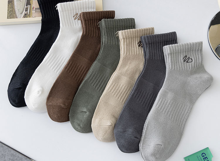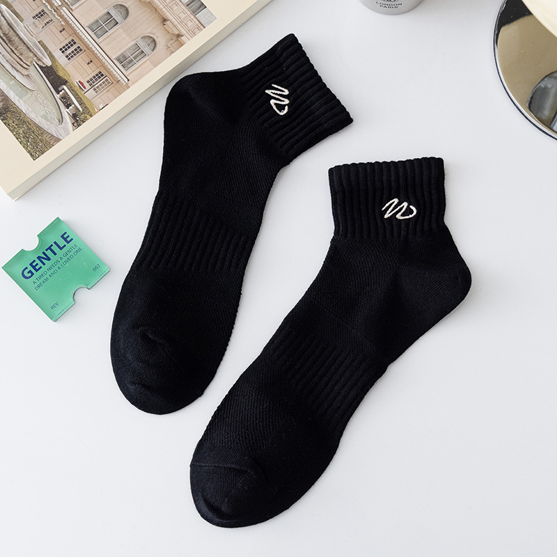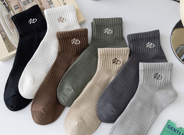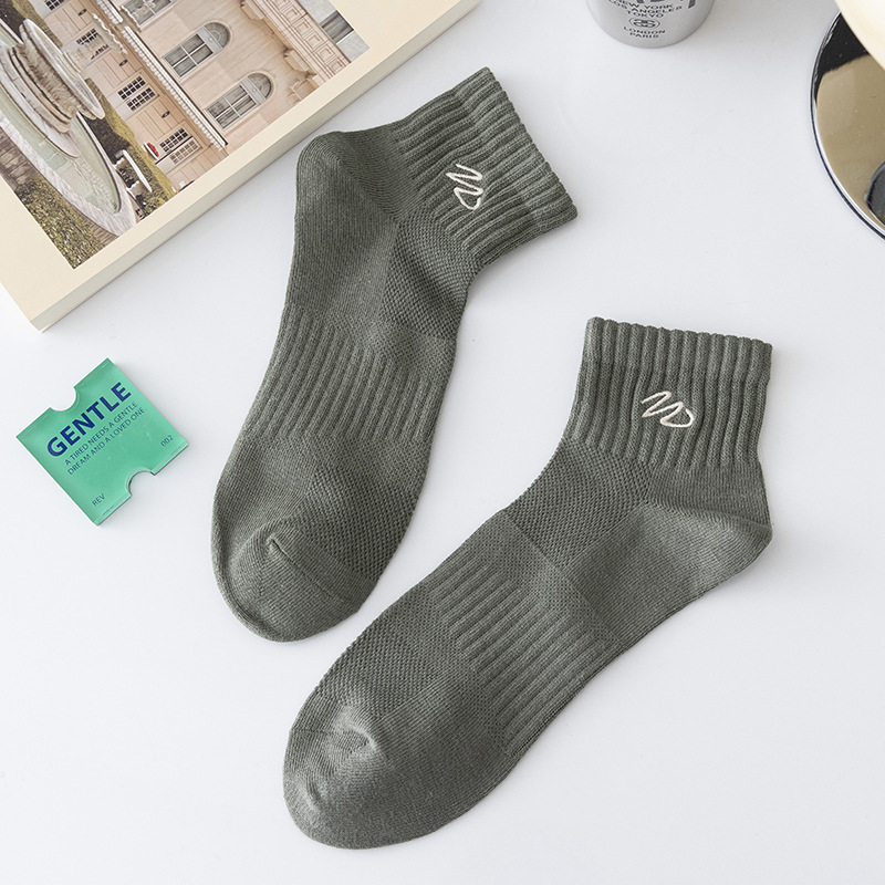 Zhuji 양말 남성용 짧은 양말 봄과 여름 얇은 w-word 자수 땀 흡수 탈취제 양말 남성용 중간 배럴 스포츠 면 양말스토어 가기