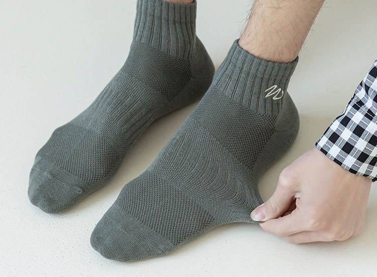 Zhuji 양말 남성용 짧은 양말 봄과 여름 얇은 w-word 자수 땀 흡수 탈취제 양말 남성용 중간 배럴 스포츠 면 양말