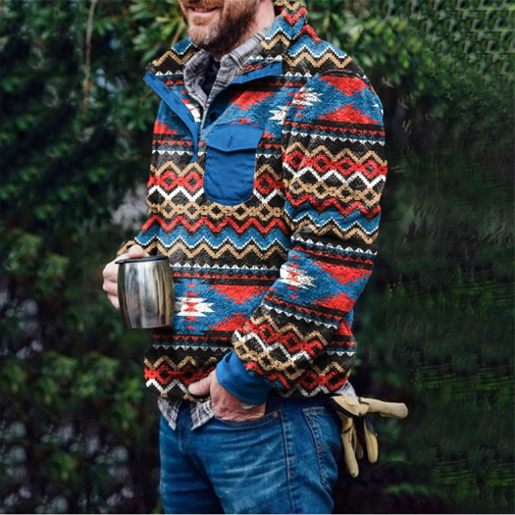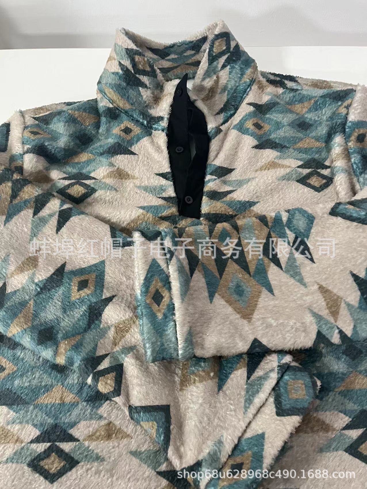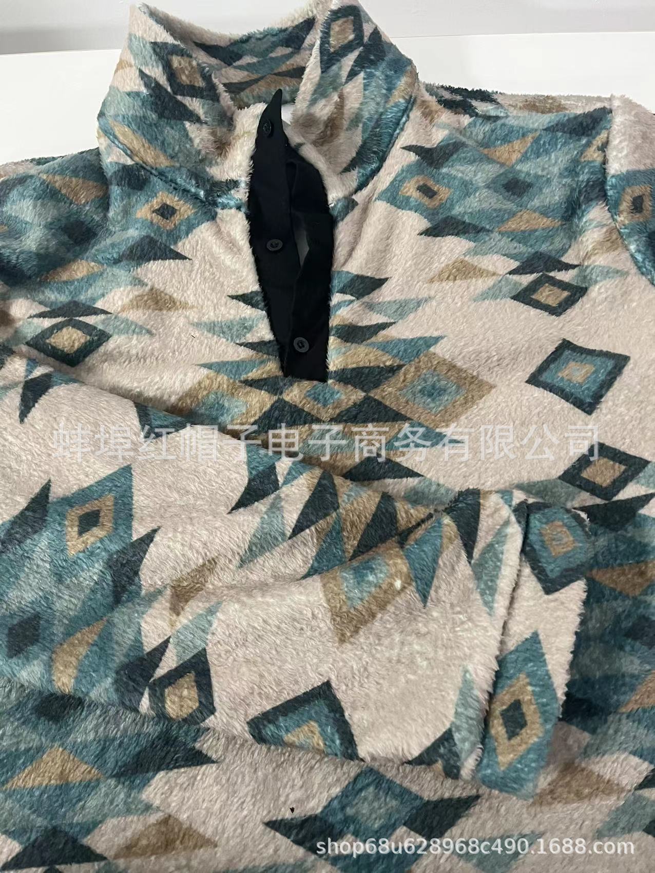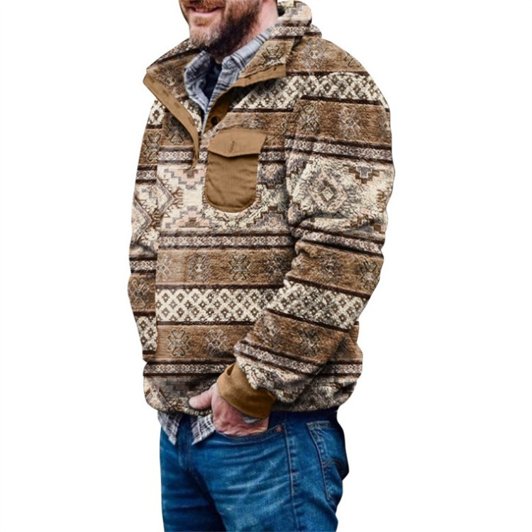 AliExpress Amazon 2025 국경 가을, 겨울 남성 유럽과 미국 캐주얼 플란넬 플러시 스웨터 버튼 포켓 스웨터