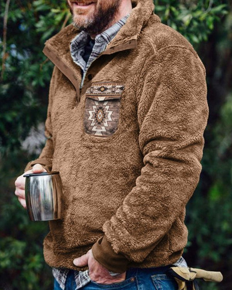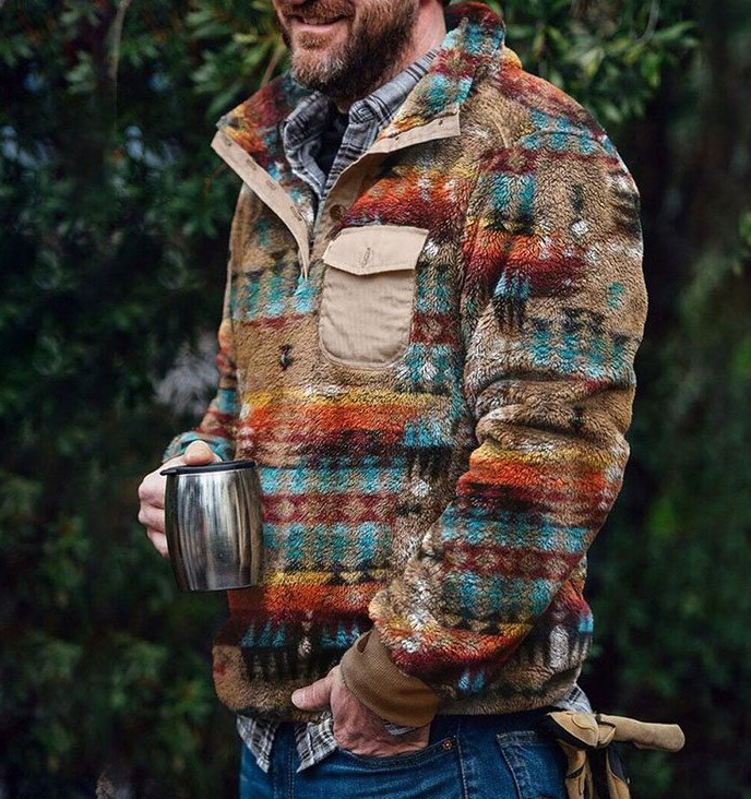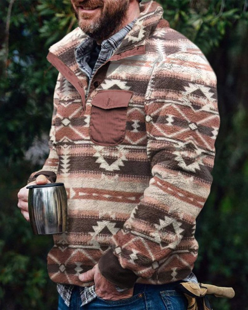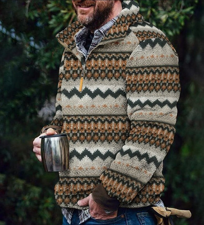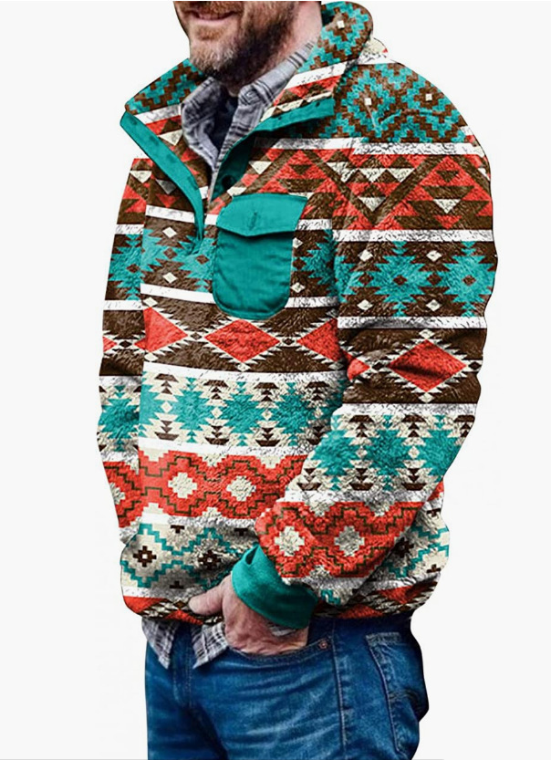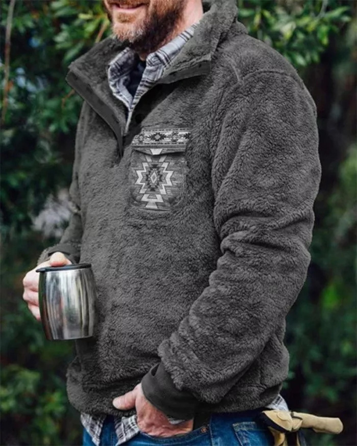 AliExpress Amazon 2025 국경 가을, 겨울 남성 유럽과 미국 캐주얼 플란넬 플러시 스웨터 버튼 포켓 스웨터