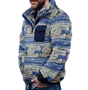 AliExpress Amazon 2025 국경 가을, 겨울 남성 유럽과 미국 캐주얼 플란넬 플러시 스웨터 버튼 포켓 스웨터스토어 가기