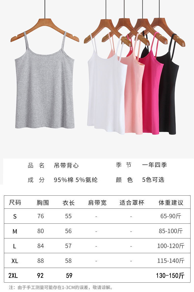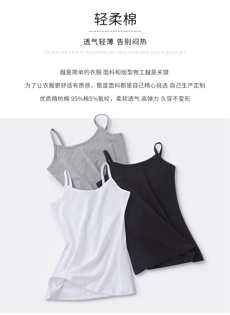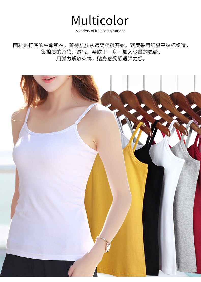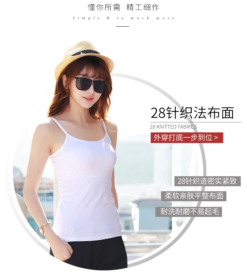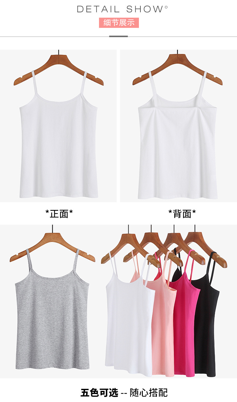 순수 코튼 화이트 캐미솔 여성 이너 탑 봄, 여름 대형 섹시한 아름다운 뒤 블랙 바닥 셔츠 도매스토어 가기