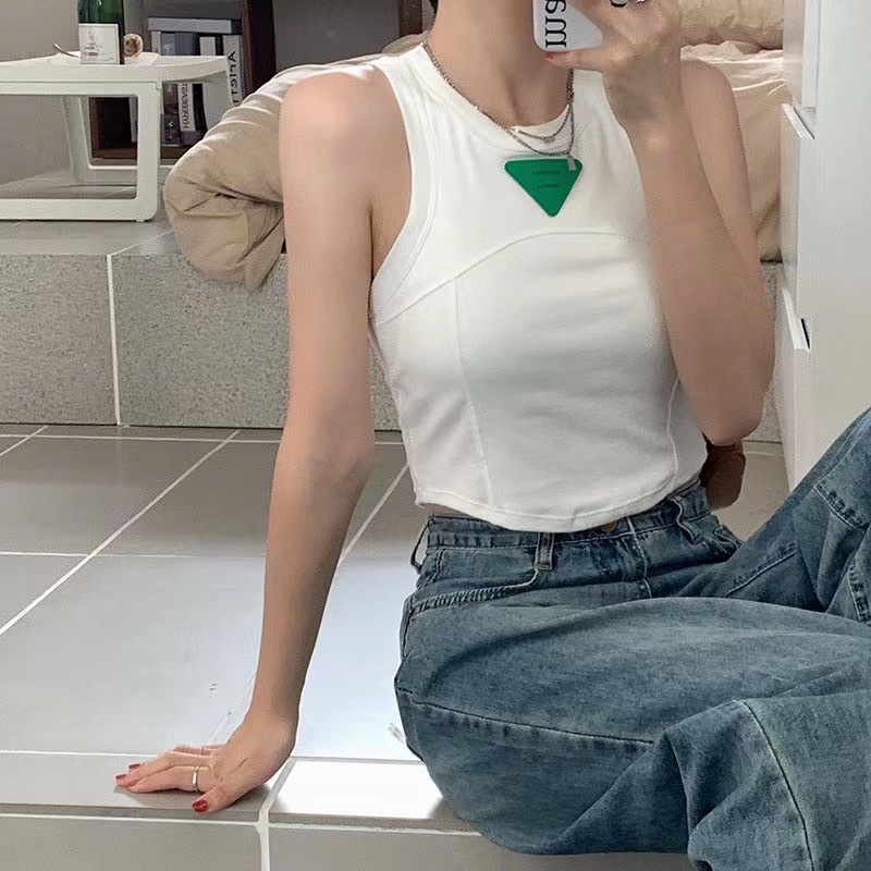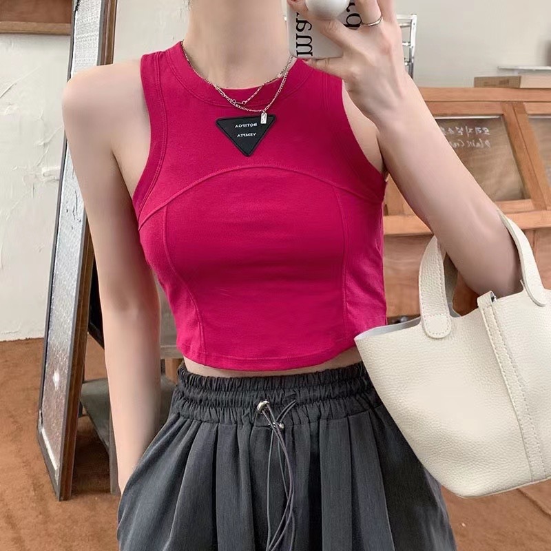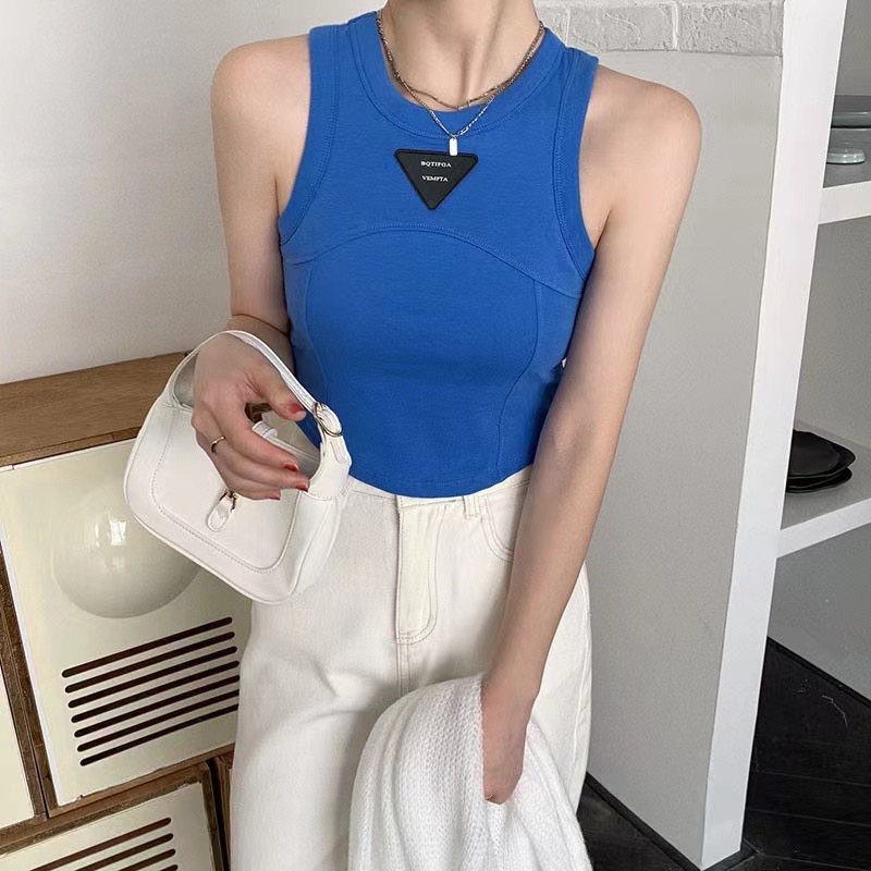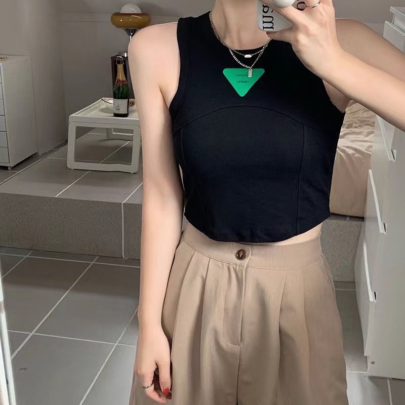 2022 스파이스 걸 I 스타일 슬림핏 슬링 인스 타 그램 스타일 조끼 여성 노출 BM 삼각형 라벨 달콤한 겉옷 가슴 랩 속옷스토어 가기