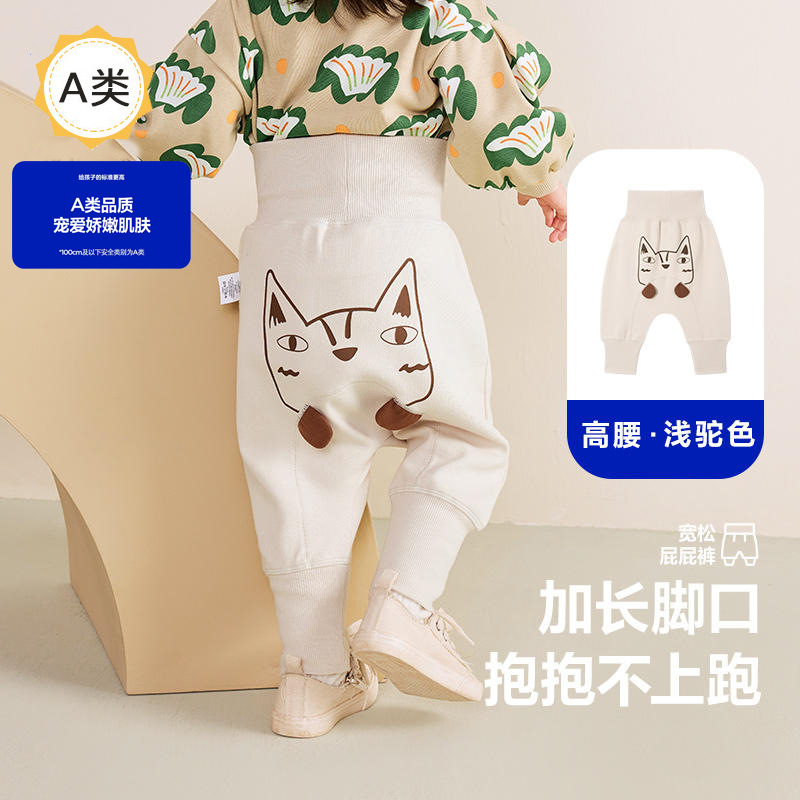 도매 아동복 아기 높은 허리 뼈없는 큰 pp 바지 봄과 가을 새로운 남성과 여성의 아기 배꼽 보호 느슨한 바지스토어 가기